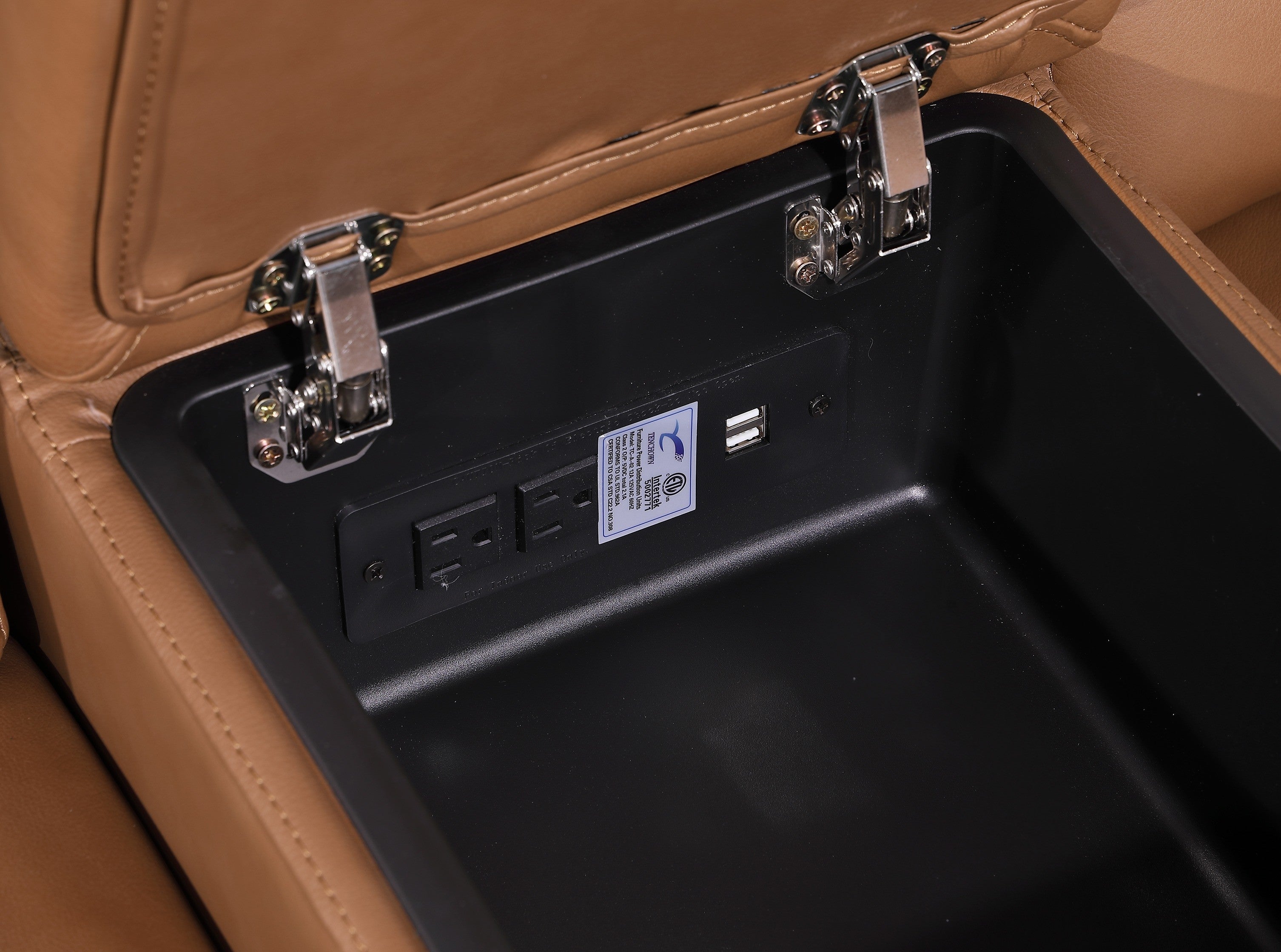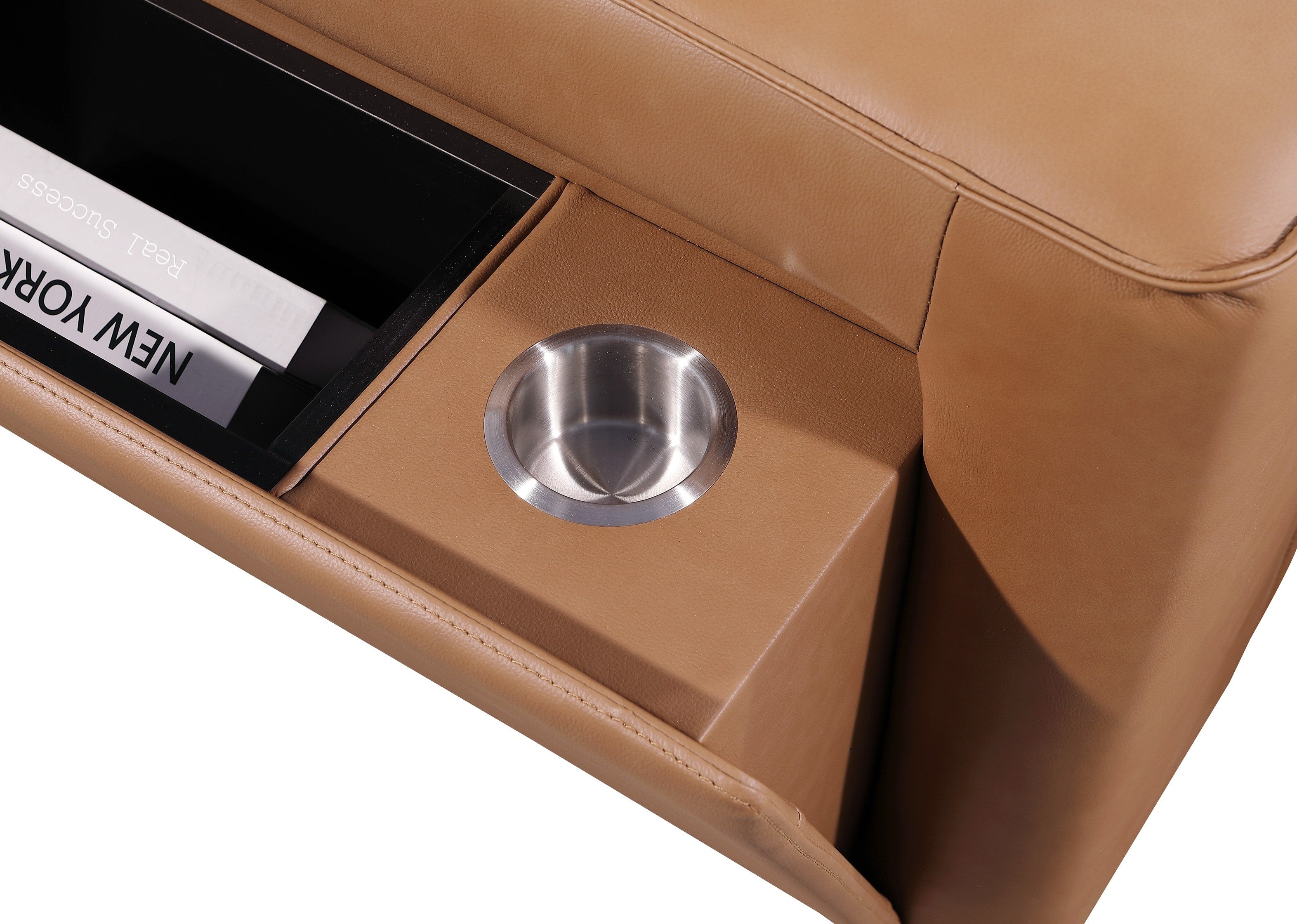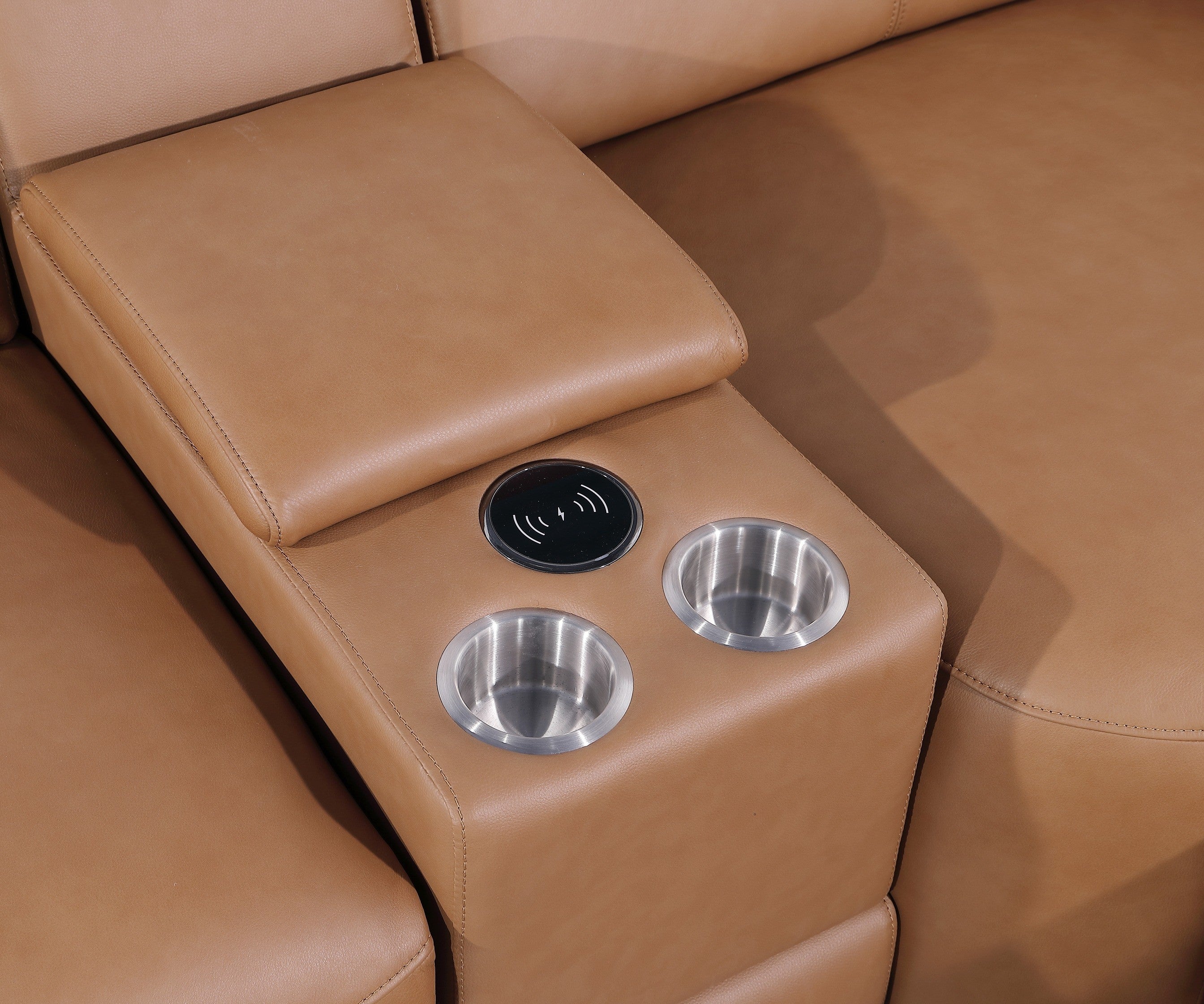 DivanItalia - Global United Furniture 1224, 6-Piece Top Grain Genuine Italian Leather Sectional with 3 Power Reclining, Power Headrests and Console in Cognac color.