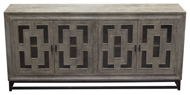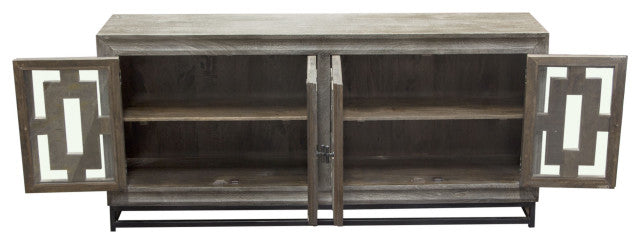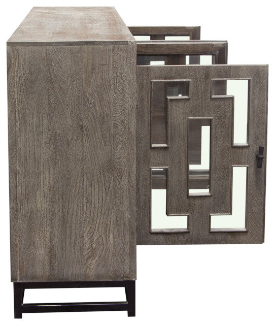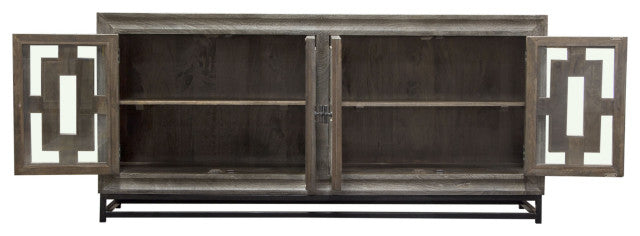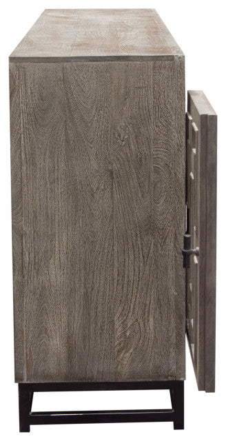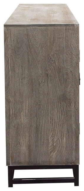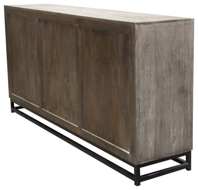 76" 4-Door Solid Mango Wood Sideboard in Walnut Grey Finish Black Iron Legs By Diamond Sofa