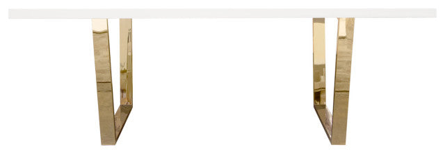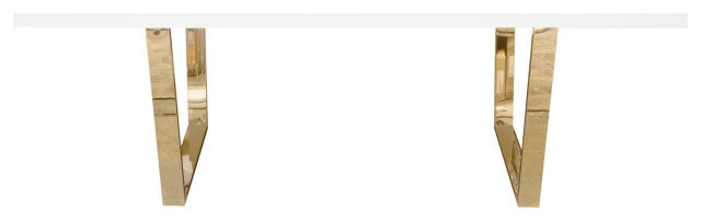 80" Rectangular Dining Table White Lacquer Top and Gold Metal Base By Diamond Sofa