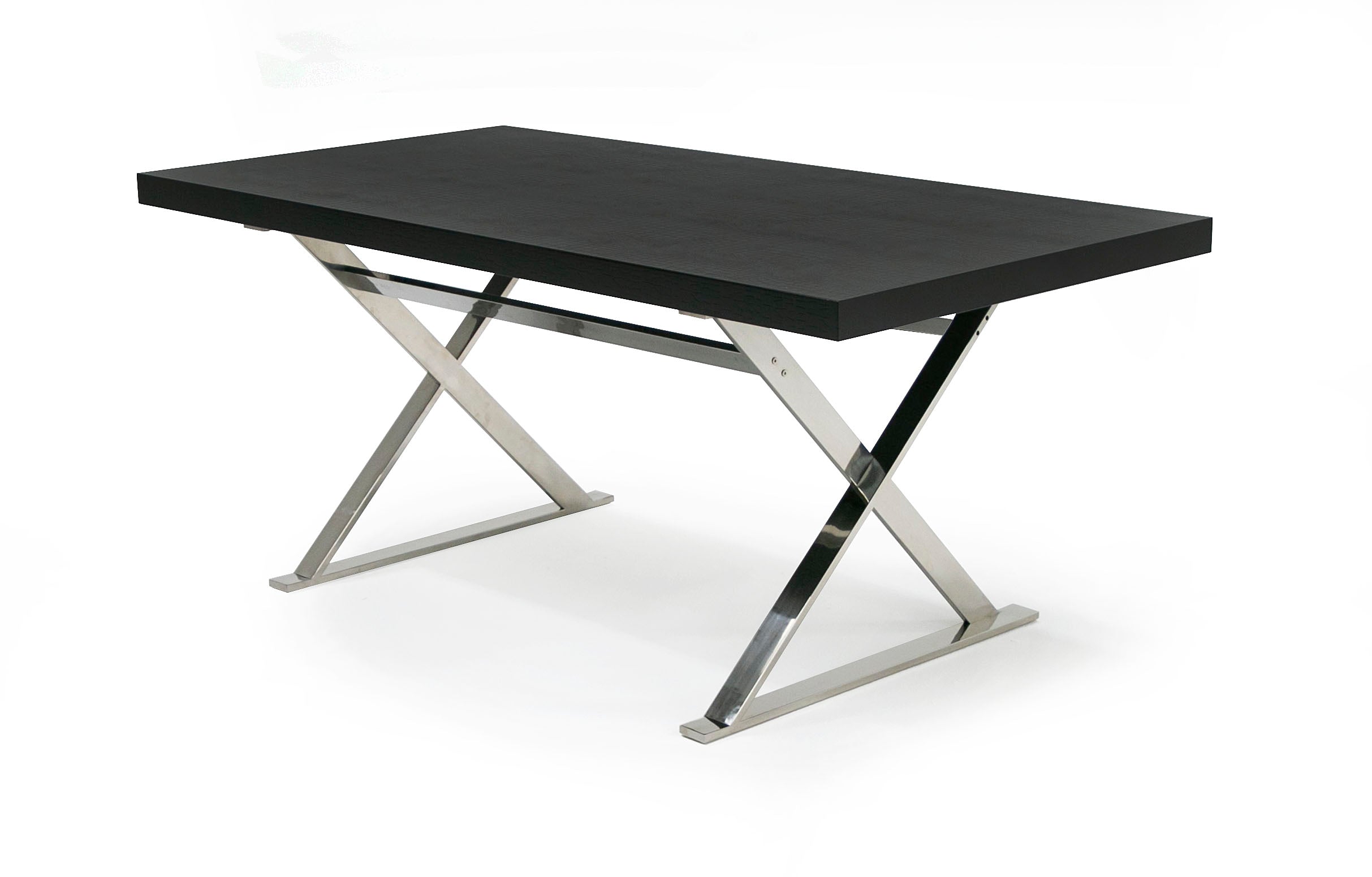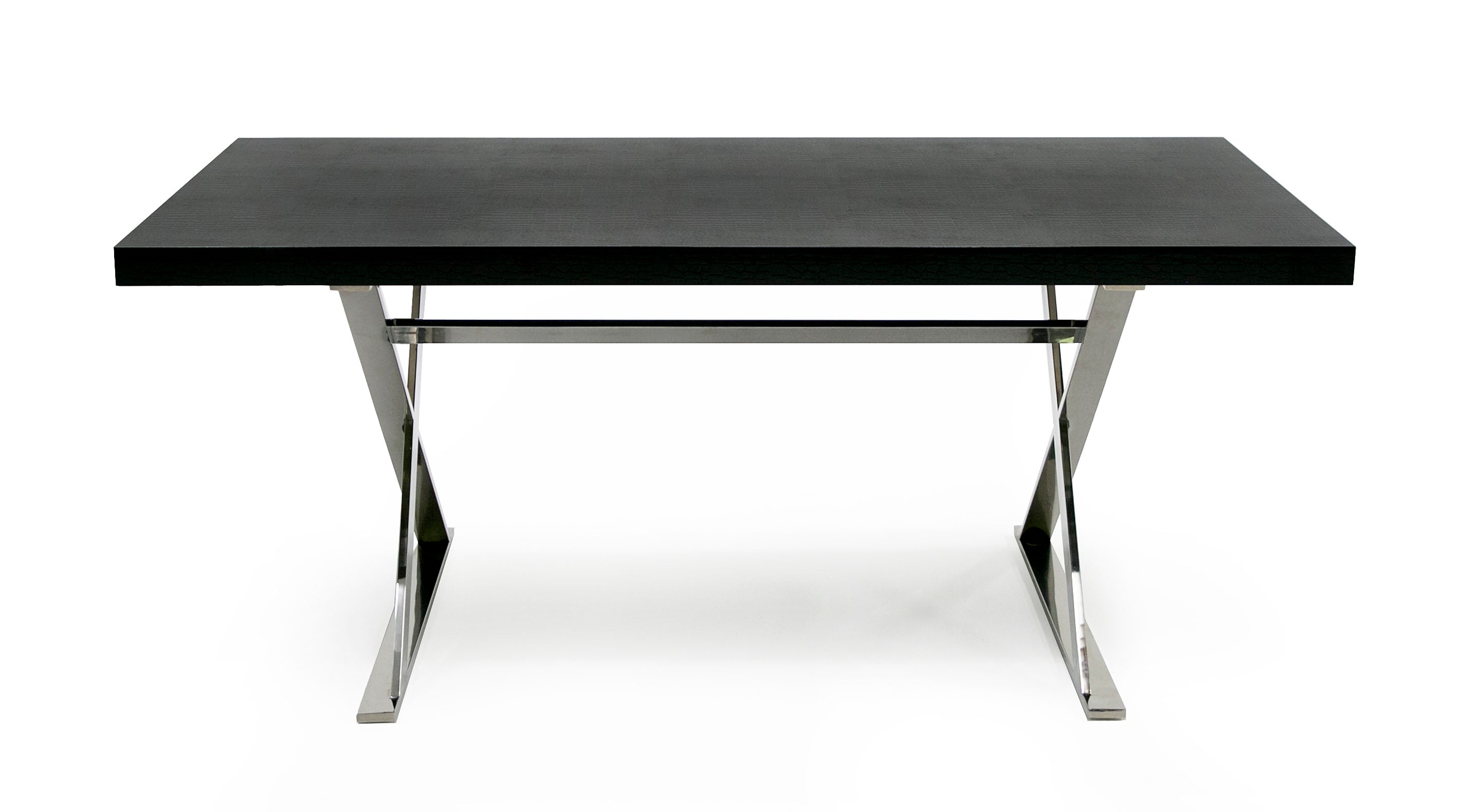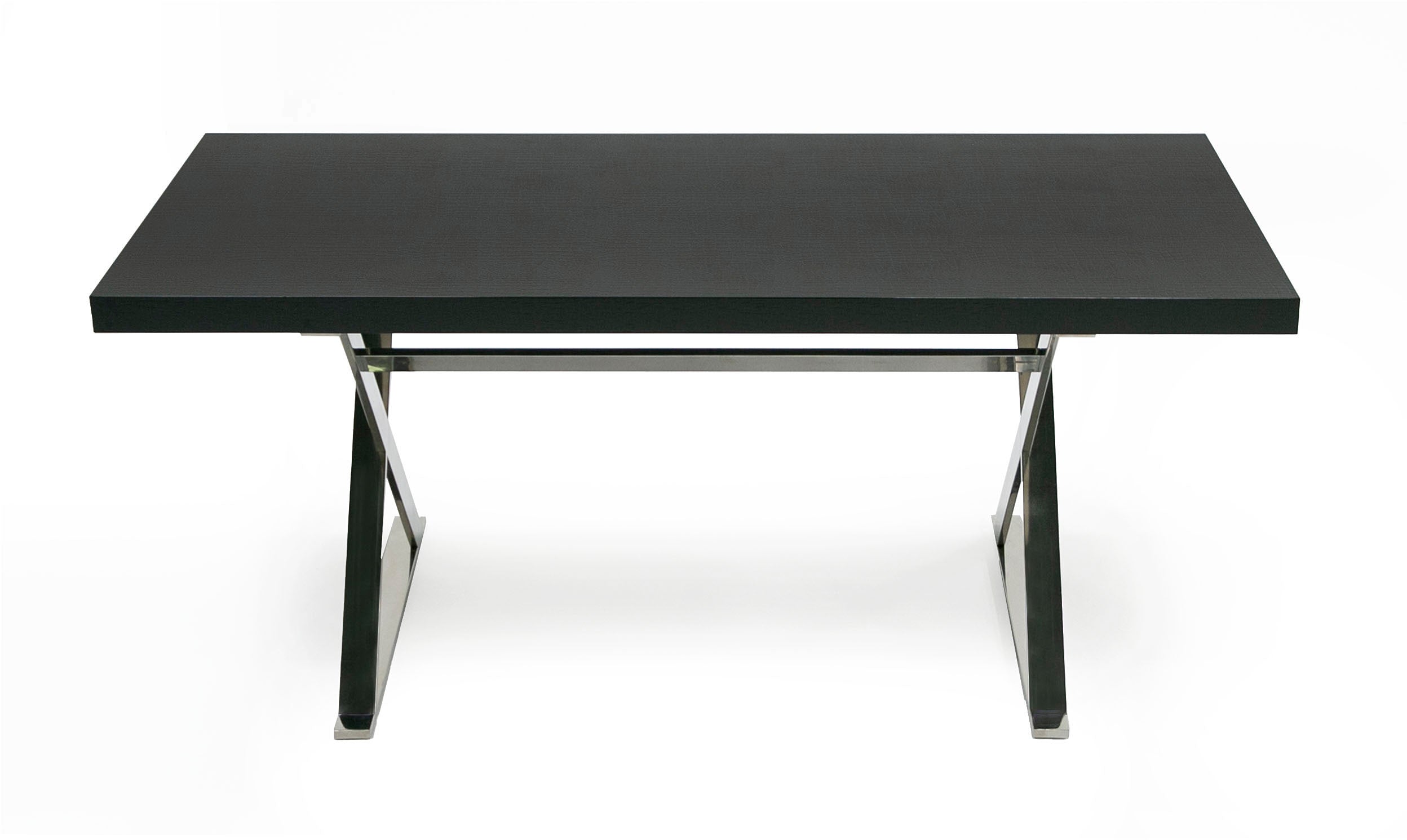 The A&X Xavier Modern Dining Table combines sleek design with luxurious materials. Its black gloss crocodile-textured top exudes sophistication, while the polished stainless steel X shape base adds a touch of contemporary elegance. Assembly is required for this striking piece, making it an ideal choice for those seeking a statement dining table.