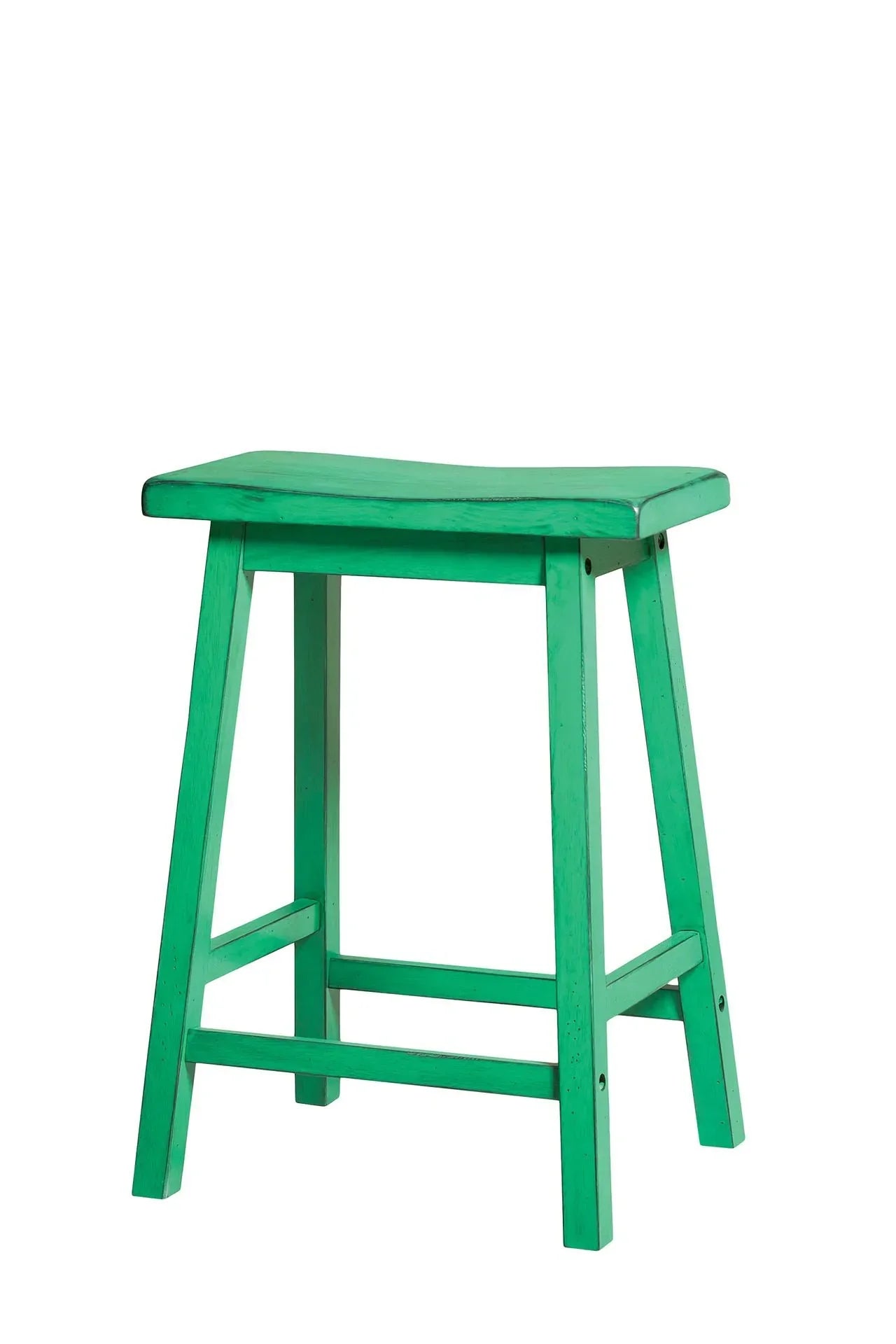 Distress Finish Saddle Stool (No Back/Armless) Wooden Seat with scooping Square Leg with Crossbars Drawing inspiration from what you might find in a little antique shop in the old quarter of Valencia, Spain, the Acme Furniture Gaucho Antique Counter Stool - Set of 2 flaunts authentic craftsmanship and a lightly distressed finish that are sure to catch your eye. This wooden stool features a contoured top, squared legs and footrests, and a full range of finishes that will complement any style.