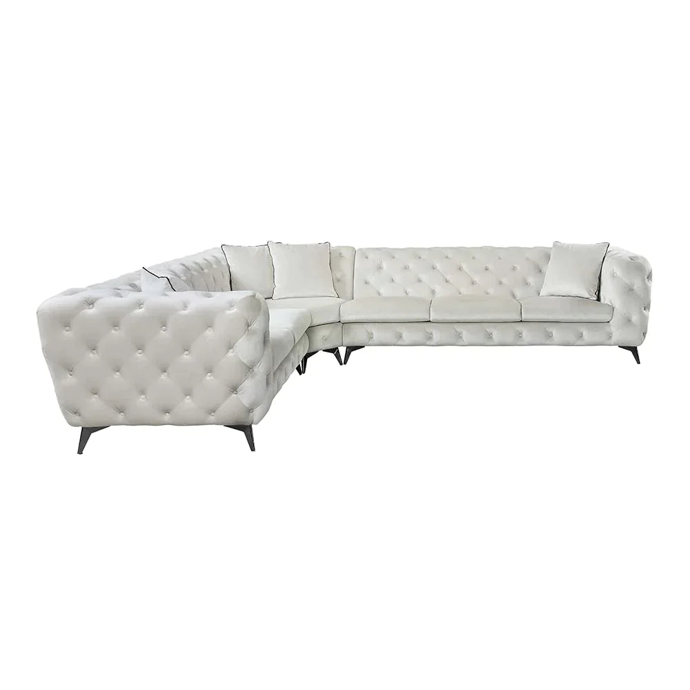 Whether you have a large family or simply enjoy entertaining regularly, this Atronia sectional is the perfect pick for living rooms that see a lot of people on daily basis. Built on a sturdy wooden frame, this modern sectional is wrapped in beige fabric upholstery and firm foam. Its tight back and loose seats are button-tufted for a traditional look, while its slightly rounded arms add a stylish touch.