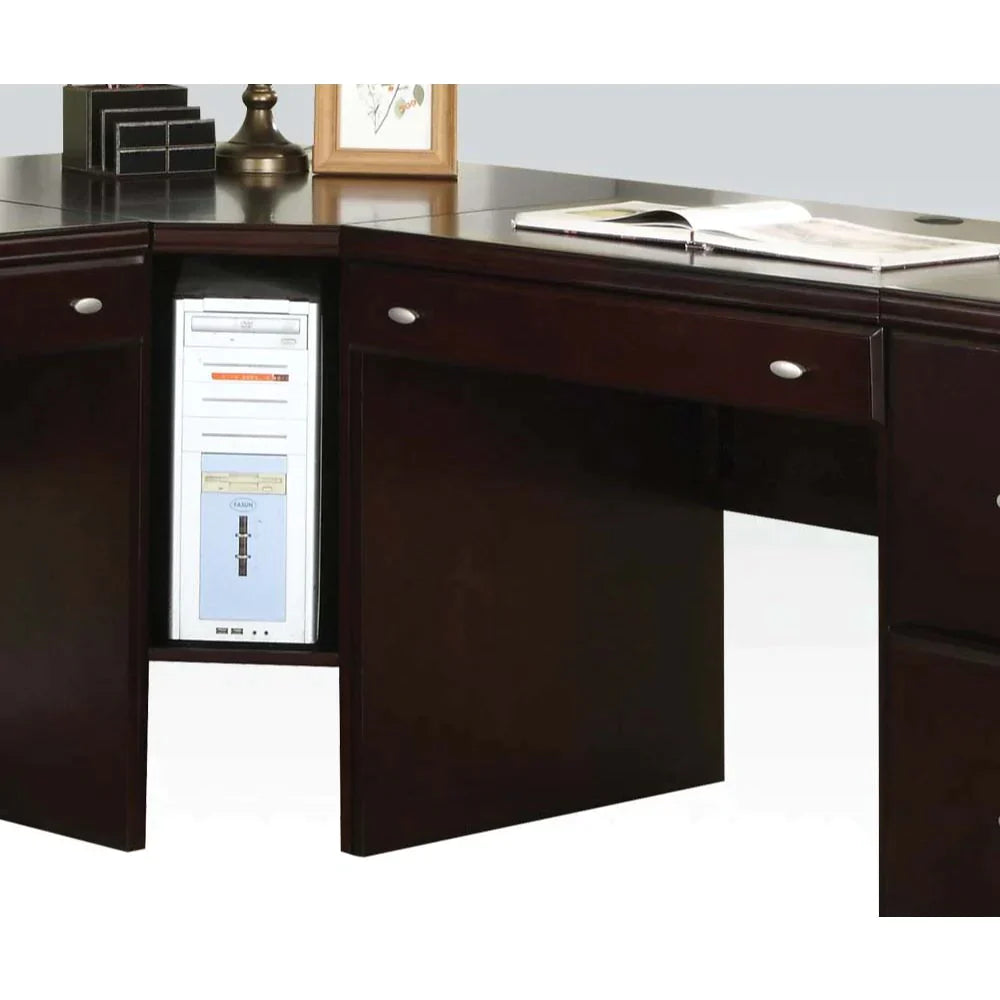 The Cape collection offers an sleek and contemporary design. This workstation is crafted in rich espresso finish, features pull-out keyboard tray and includes plenty storage area, ideal for electronics or accessories. Stylish sleek design and practicality go hand-in-hand with computer desk.
