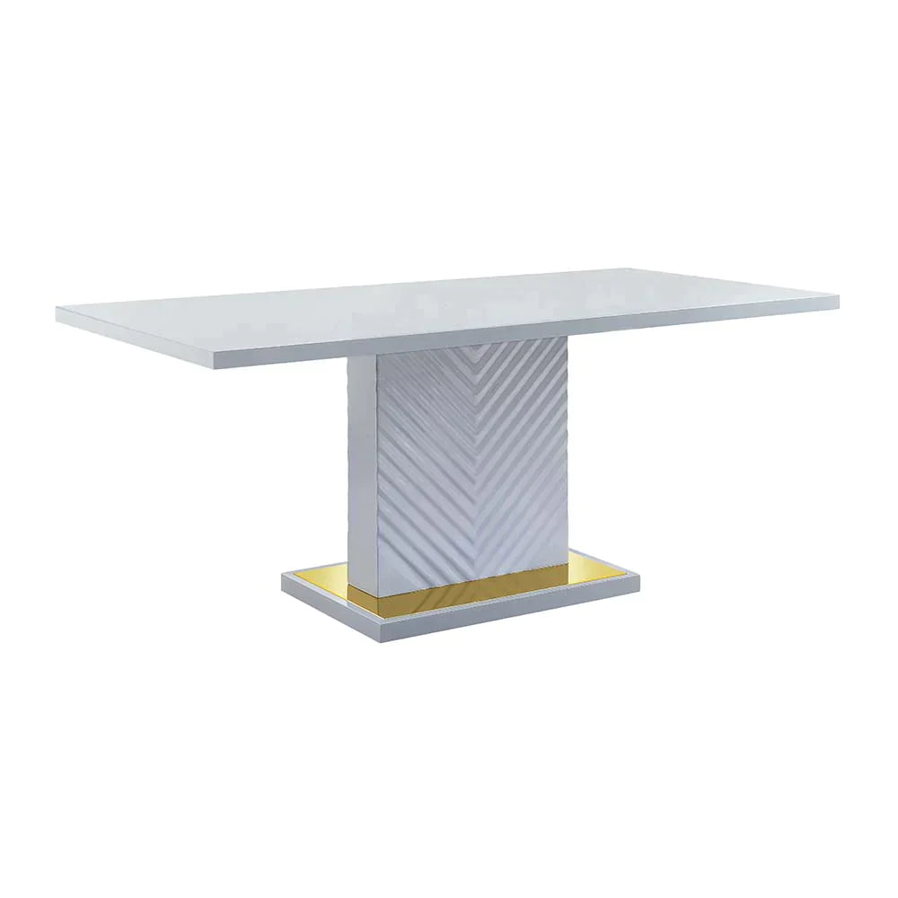 hint of glam, the base offers a touch of gold to enhance the textured vertical lined pedestal. The gray high gloss finish reflects