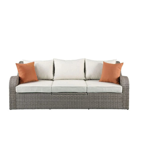 Product Material: All-Weather Resin Wicker, Aluminum, Glass, Fabric Cushion (Polyester), Filling: Foam & Polyester (Back Pillows Polyester Only)