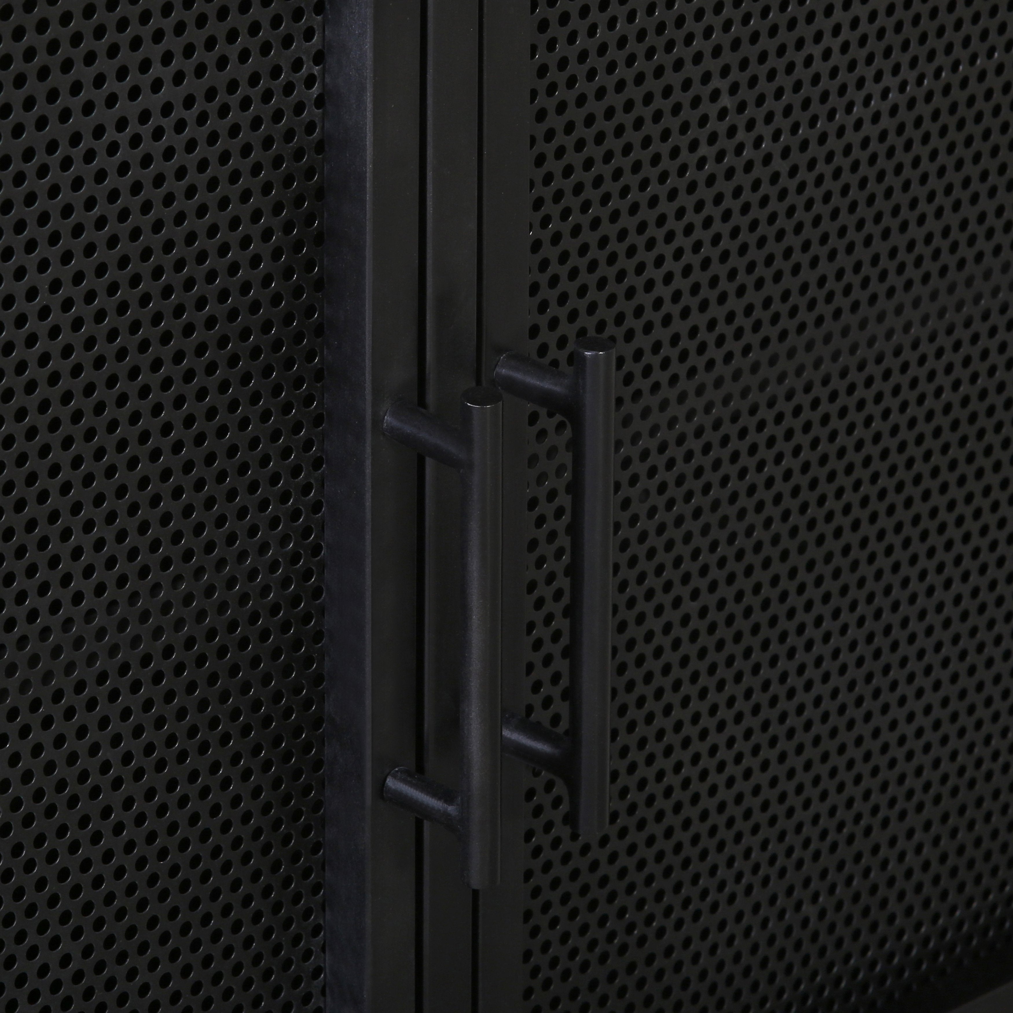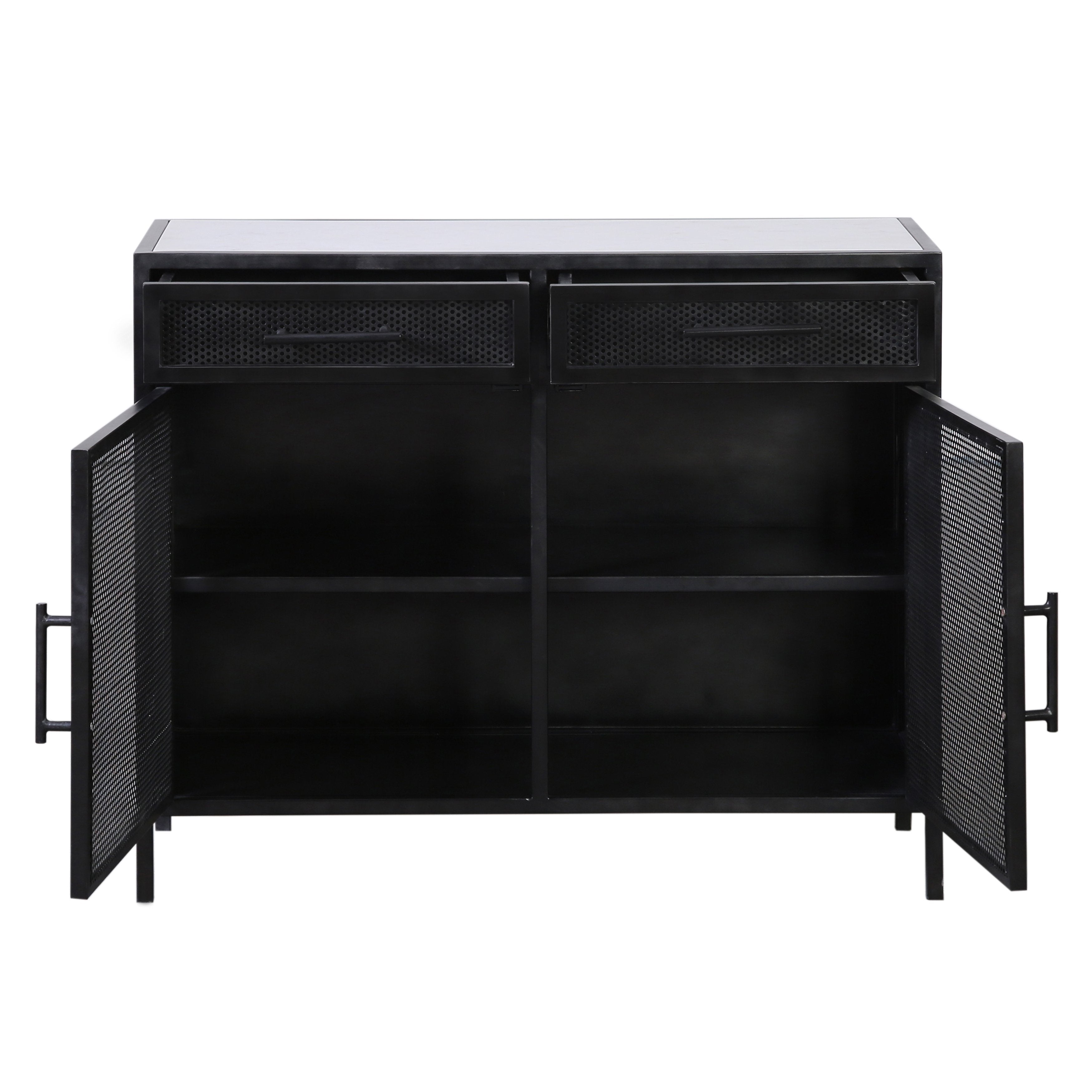 Dark and mysterious, our Adeliza Sideboard makes for the perfect moody addition to your décor. Made with a solid black antique metal frame and topped with Banswara marble for a contemporary touch. Showcasing a sleek silhouette of modern industrial undertones that will instantly bring architectural interest into any space. It measures 36" wide and 30" tall, offering spacious compartments and mesh cabinet fronts that deliver a peek-a-boo effect to subtly showcase your stored items.