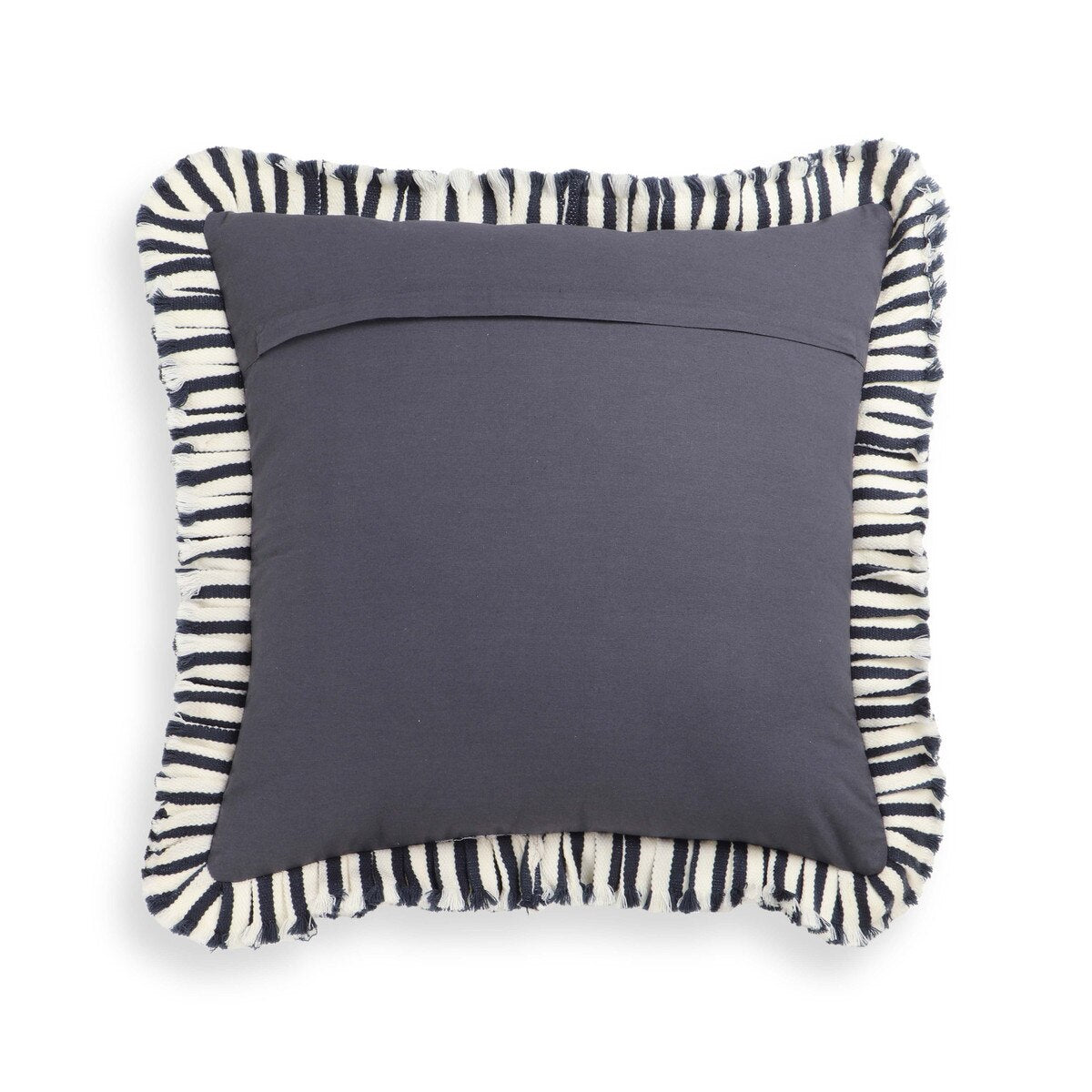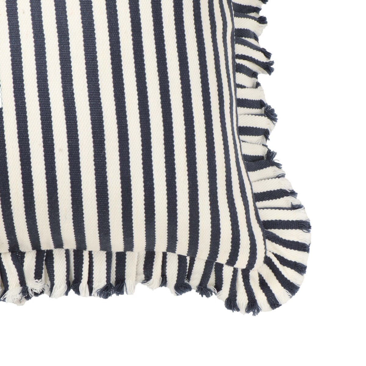 Alessia Navy Striped Ruffle 20" Square Accent Pillow Model: TOV-C18749