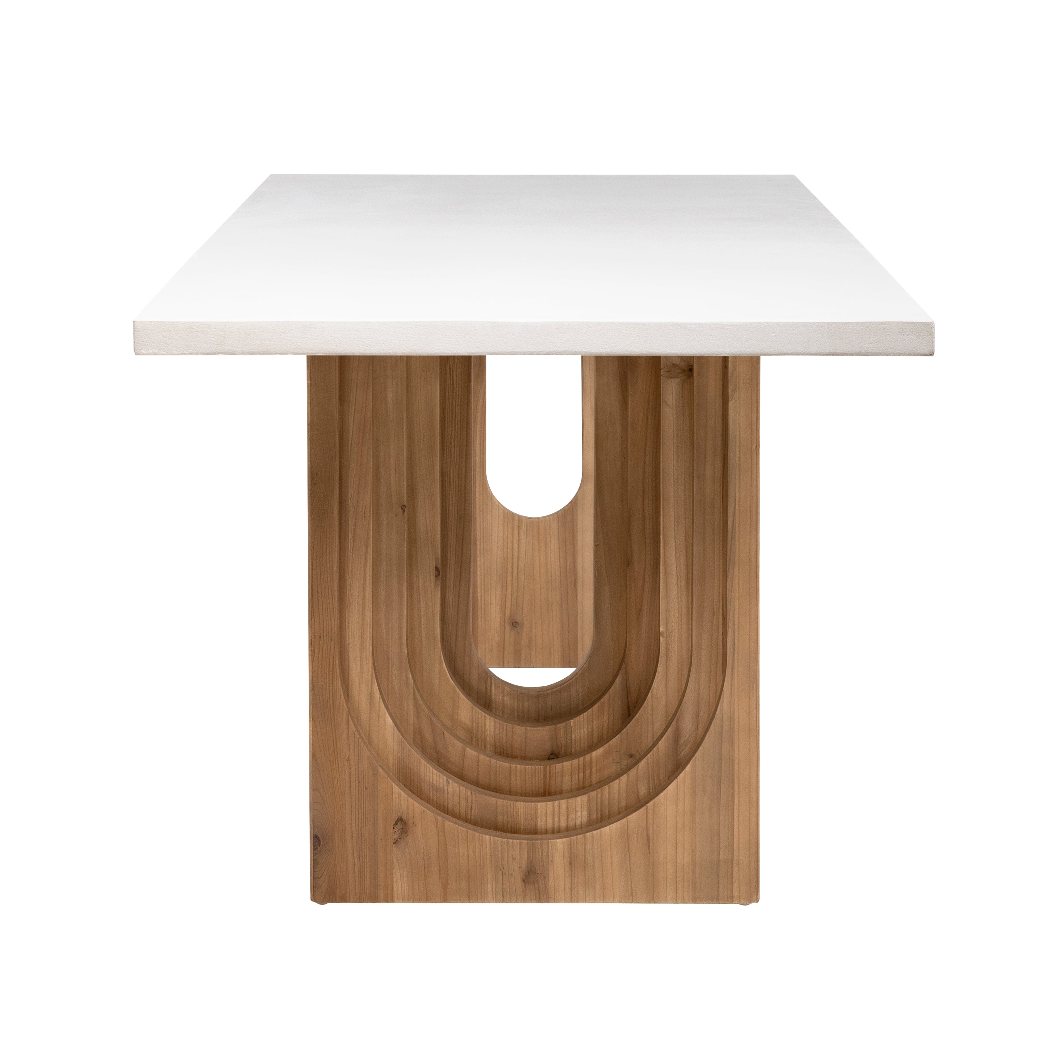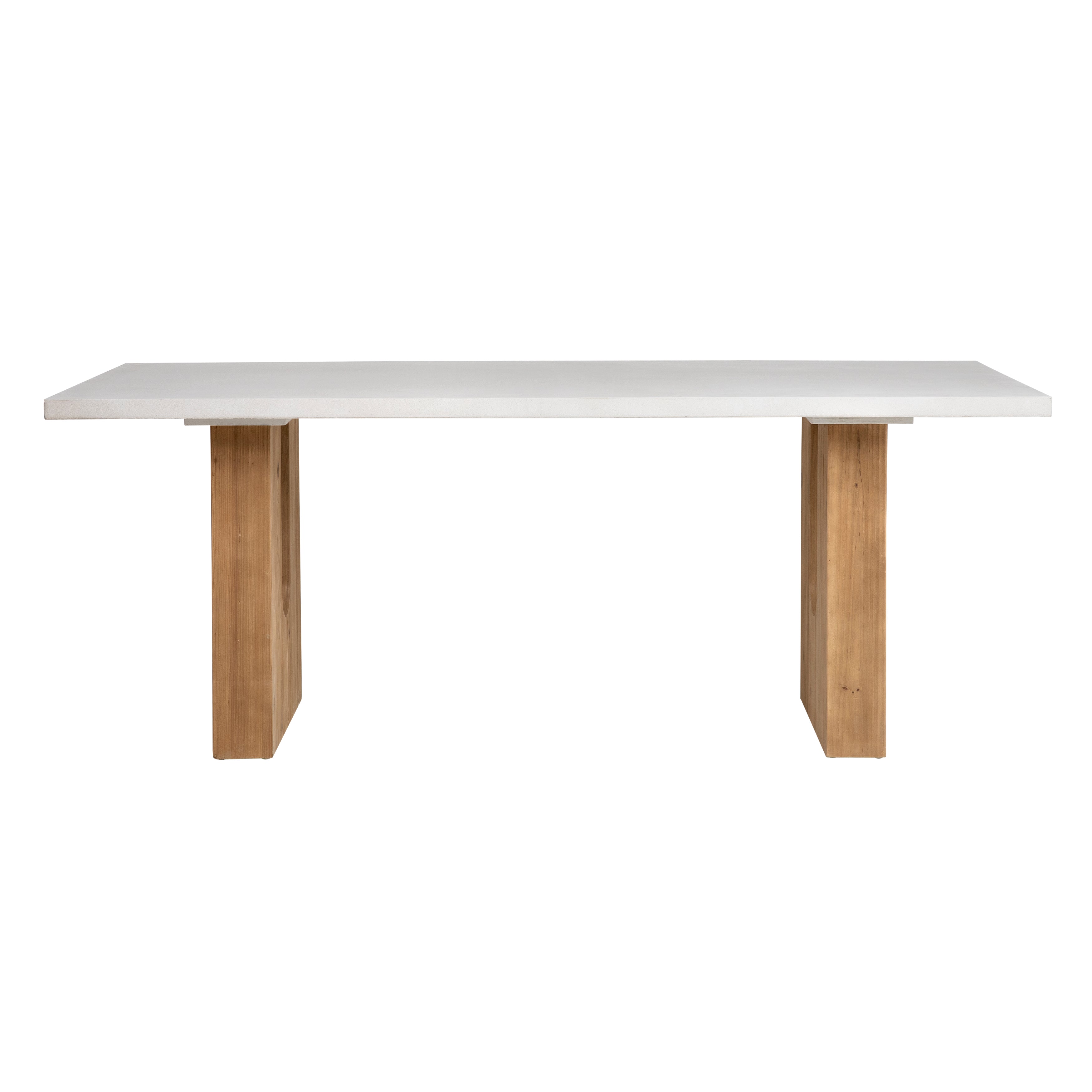 Alessio White Concrete Top and Natural Brushed Pine Wood Finish Dining Table
