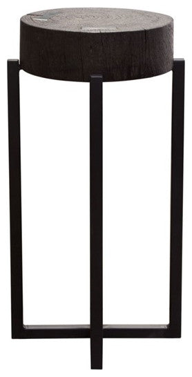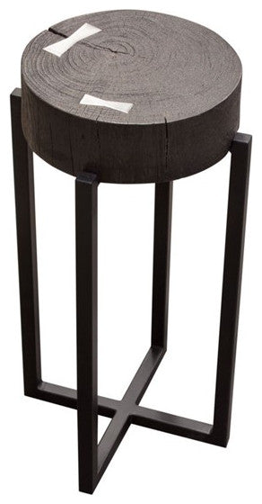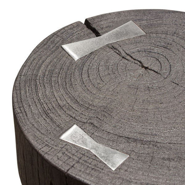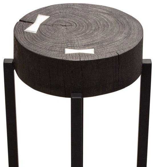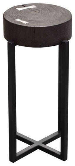 Alex Large 25" Accent Table Solid Mango Wood Top Espresso Silver Metal Inlay By Diamond Sofa