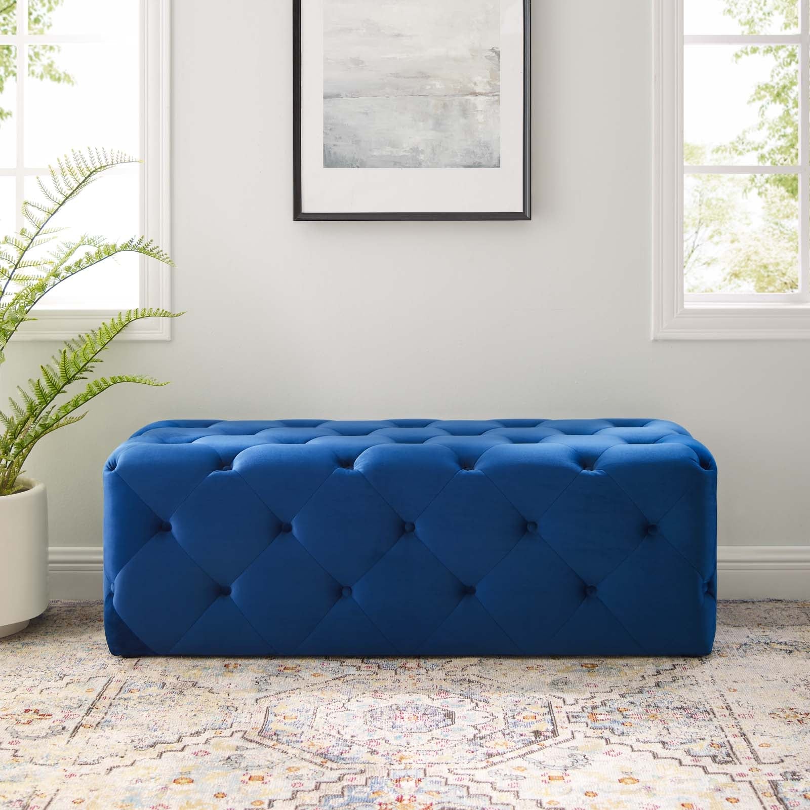 Enliven your decor with Amour. This tufted button entryway bench comes upholstered in soft and durable stain-resistant performance velvet fabric and dense foam padding for a luxurious seating experience. Instantly update your entryway, foyer, hallway, living room with this versatile 48-inch long bench. Bench Weight Capacity: 500 lbs.