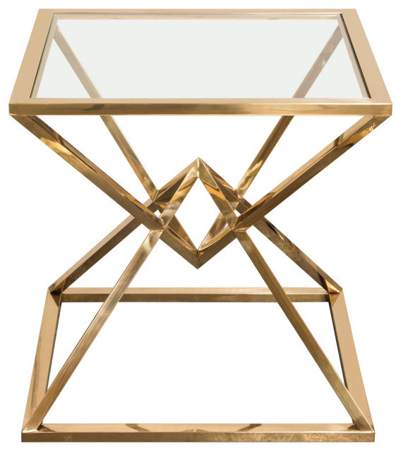Aria Square End Table With Metal Base, Gold By Diamond Sofa