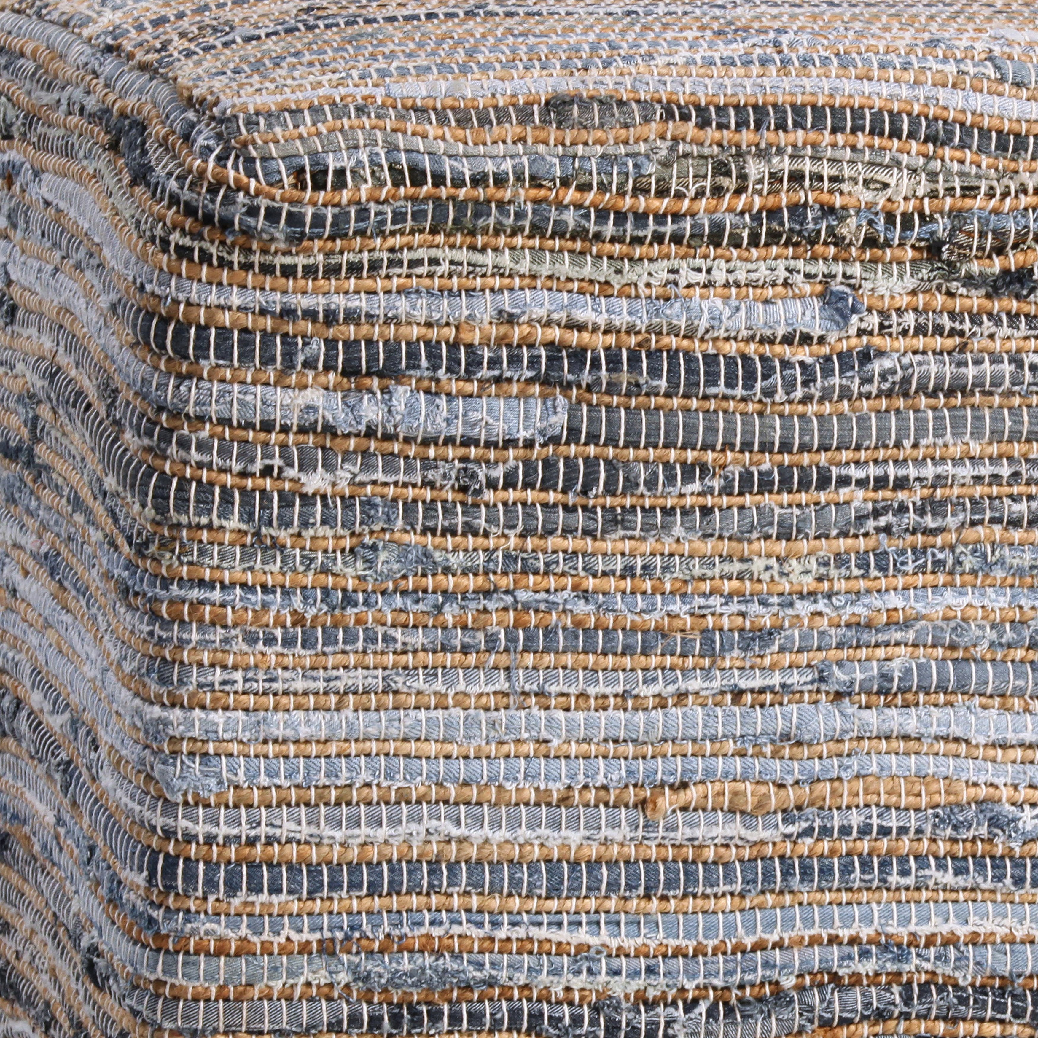 Add a cozy touch with this 18x18" ottoman pouf. Customized with a unique variety of textures and materials utilizing recycled denim and natural jute upholstery with wood filler. This ottoman is meticulously handcrafted by artisans in India, due to its handcrafted nature, each piece will be unique.
