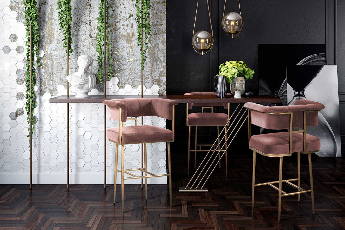 Astrid Blush Velvet Bar Stool Model: TOV-D44028
