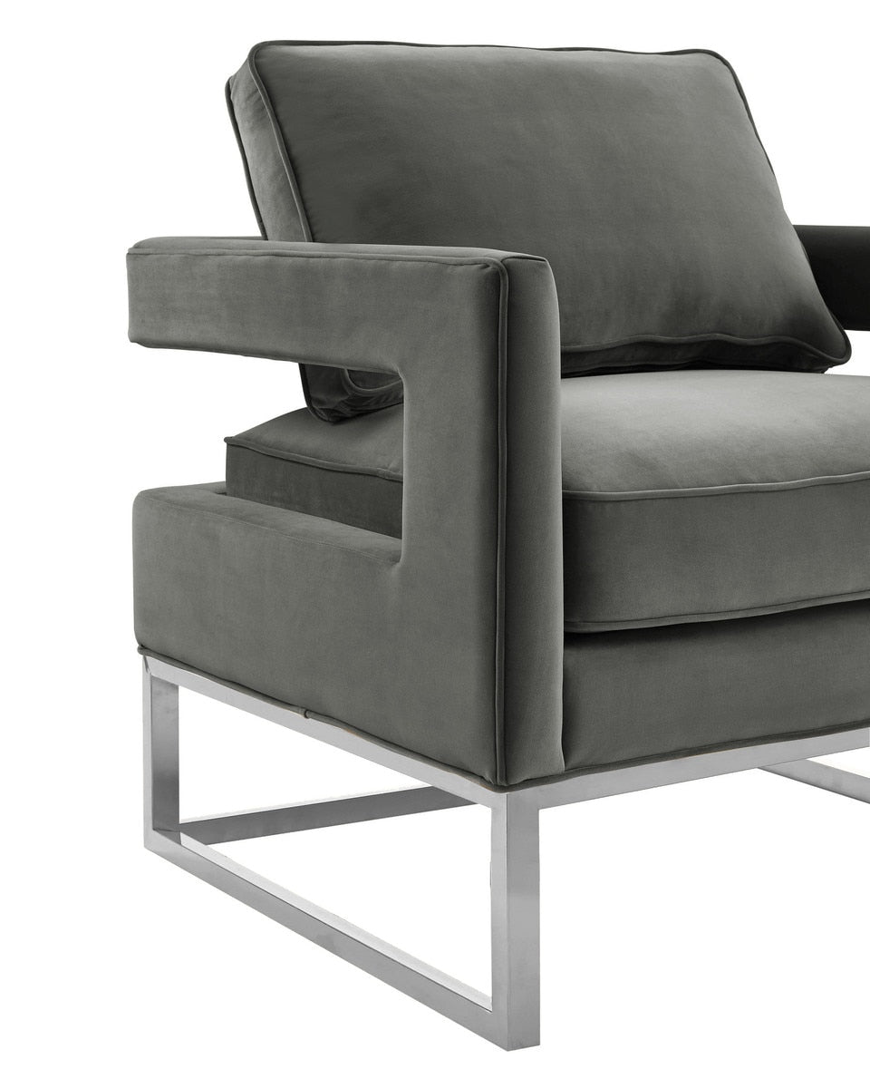 Avery Grey Velvet Chair with Silver Base Model: TOV-S6293