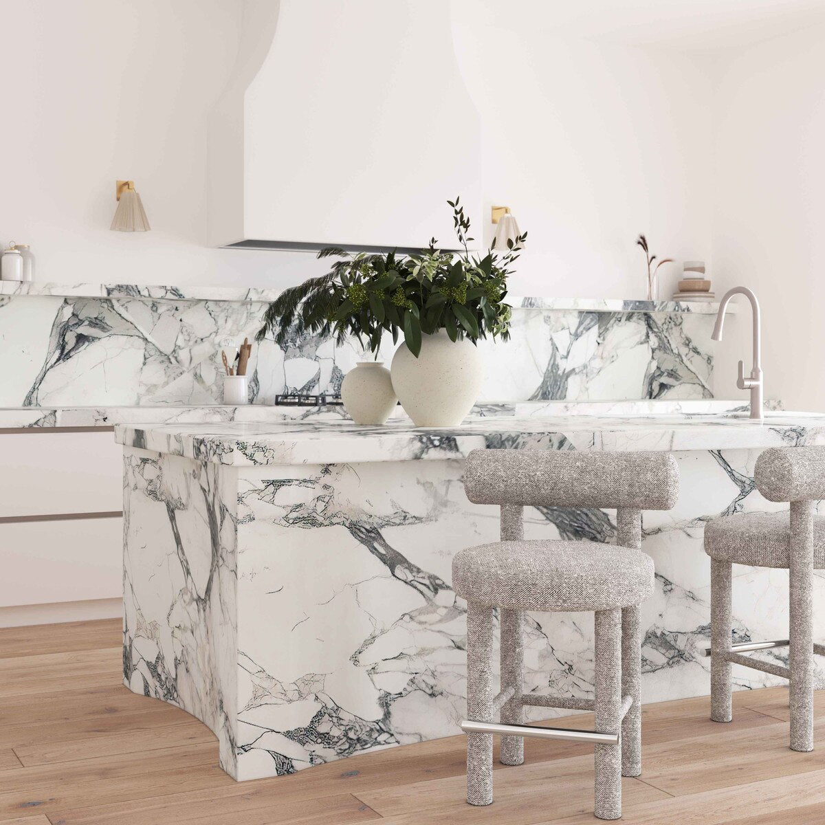 Carmel Black & White Performance Boucle Counter Stool Model: TOV-D68982