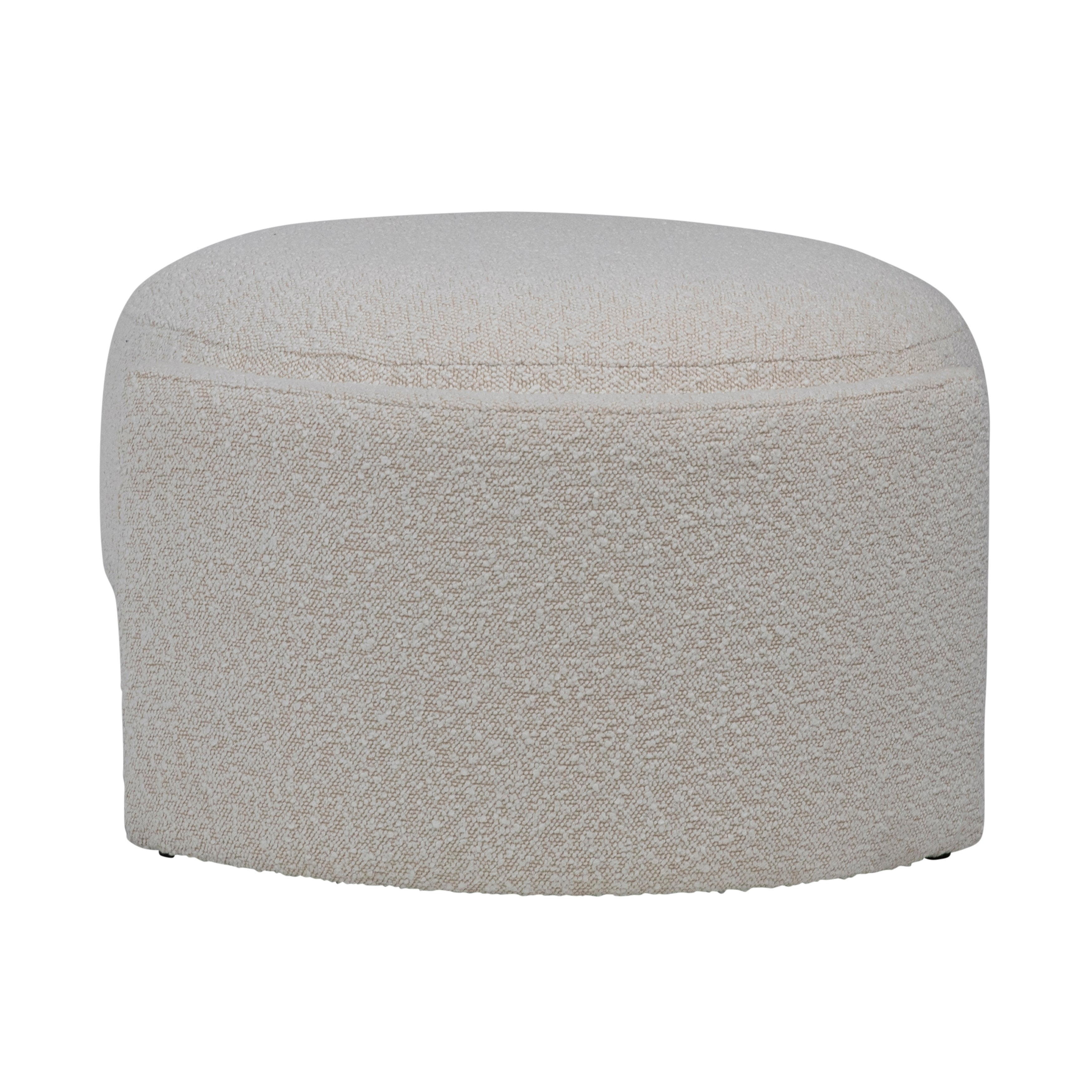 Add a contemporary touch to your seating arrangement with this lovely ottoman. Featuring a round frame supported by a stunning off-white boucle upholstery for extra softness and comfort. Use this 16x28 ottoman as a center table to display small tray and knick-knacks or as a place to prop your feet up after a long day.