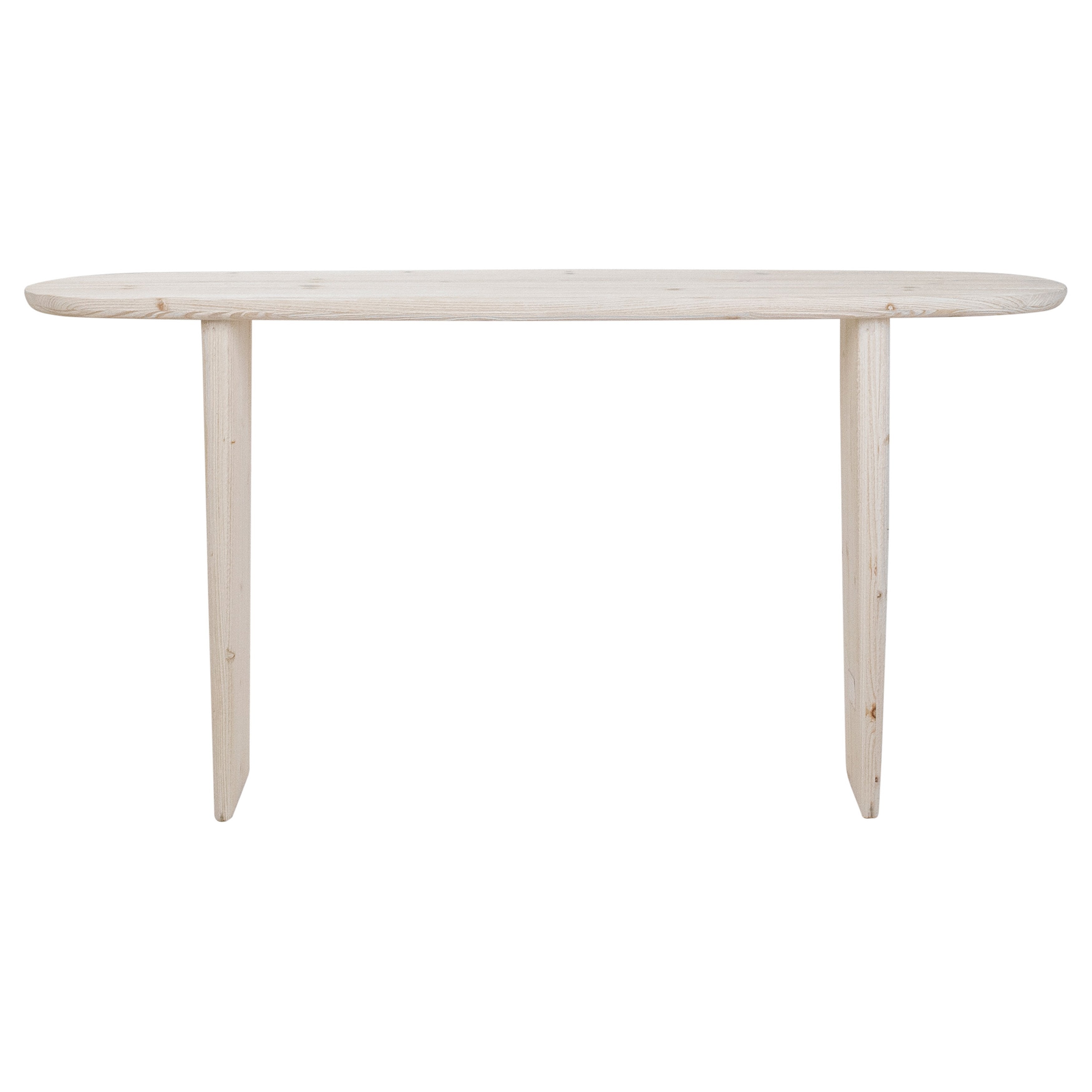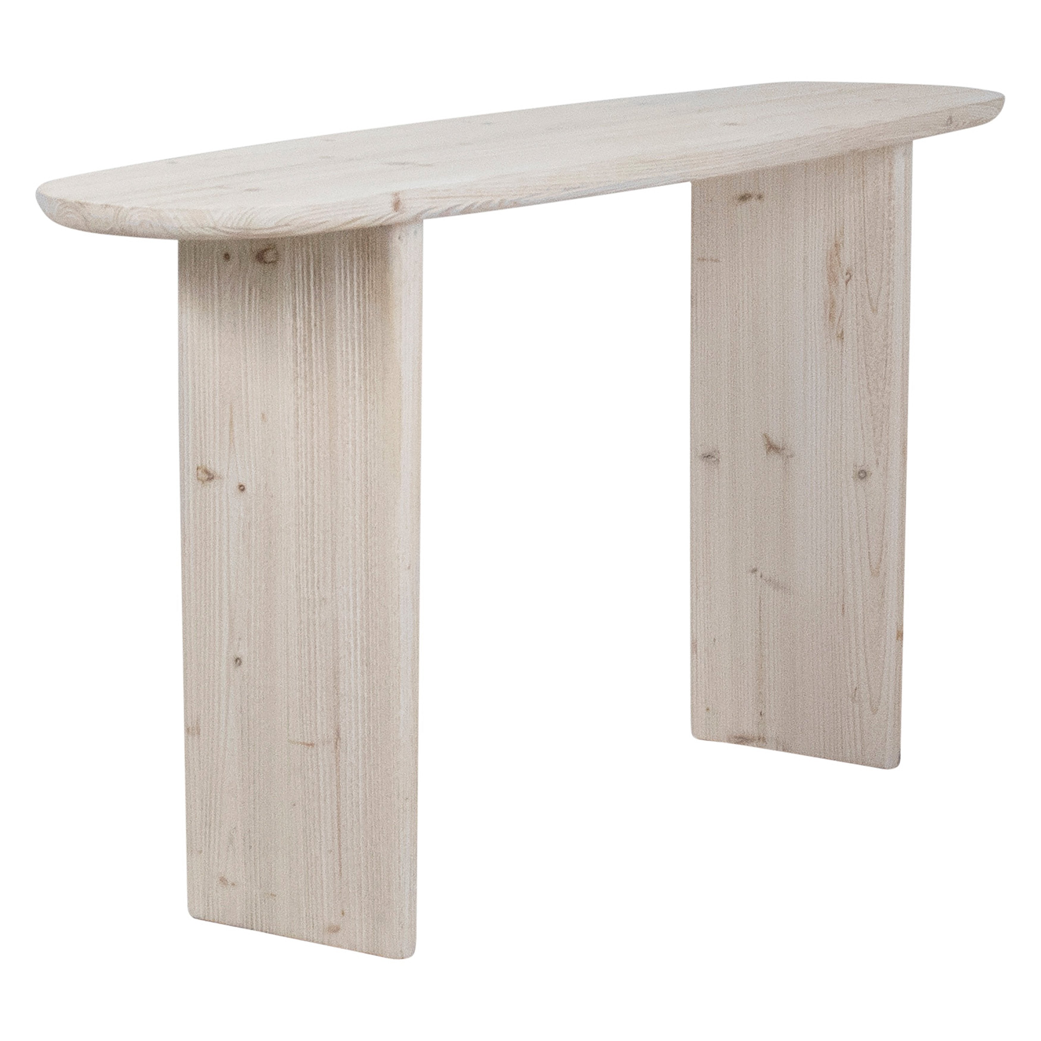 Crafted from reclaimed pine wood sculpted to create an organic form. This 60 console table invites natures palette and texture into your home. Featuring a grey whitewash finish for an inviting and airy look, perfectly fitting for hallways, entryways, or behind sofas. Beautifully display accents, books, or treasured photos.