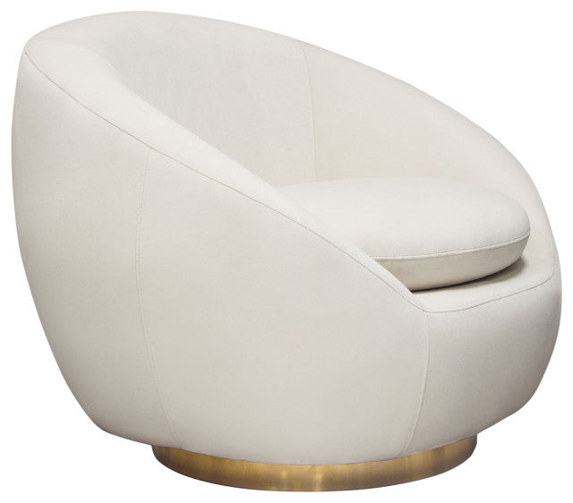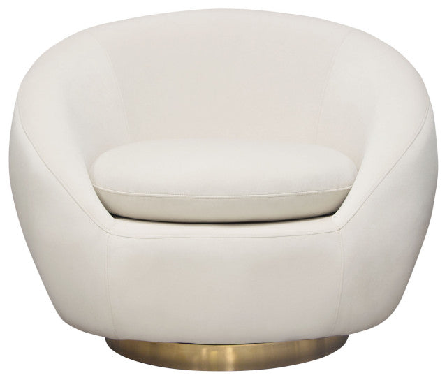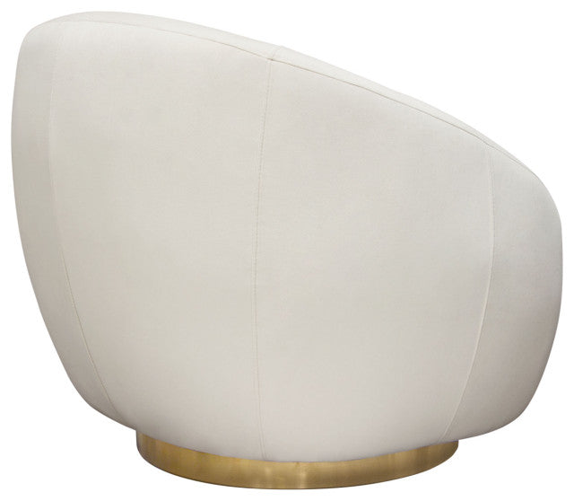 Celine Swivel Accent Chair, Light Cream Velvet With Brushed Gold Accent Band By Diamond Sofa