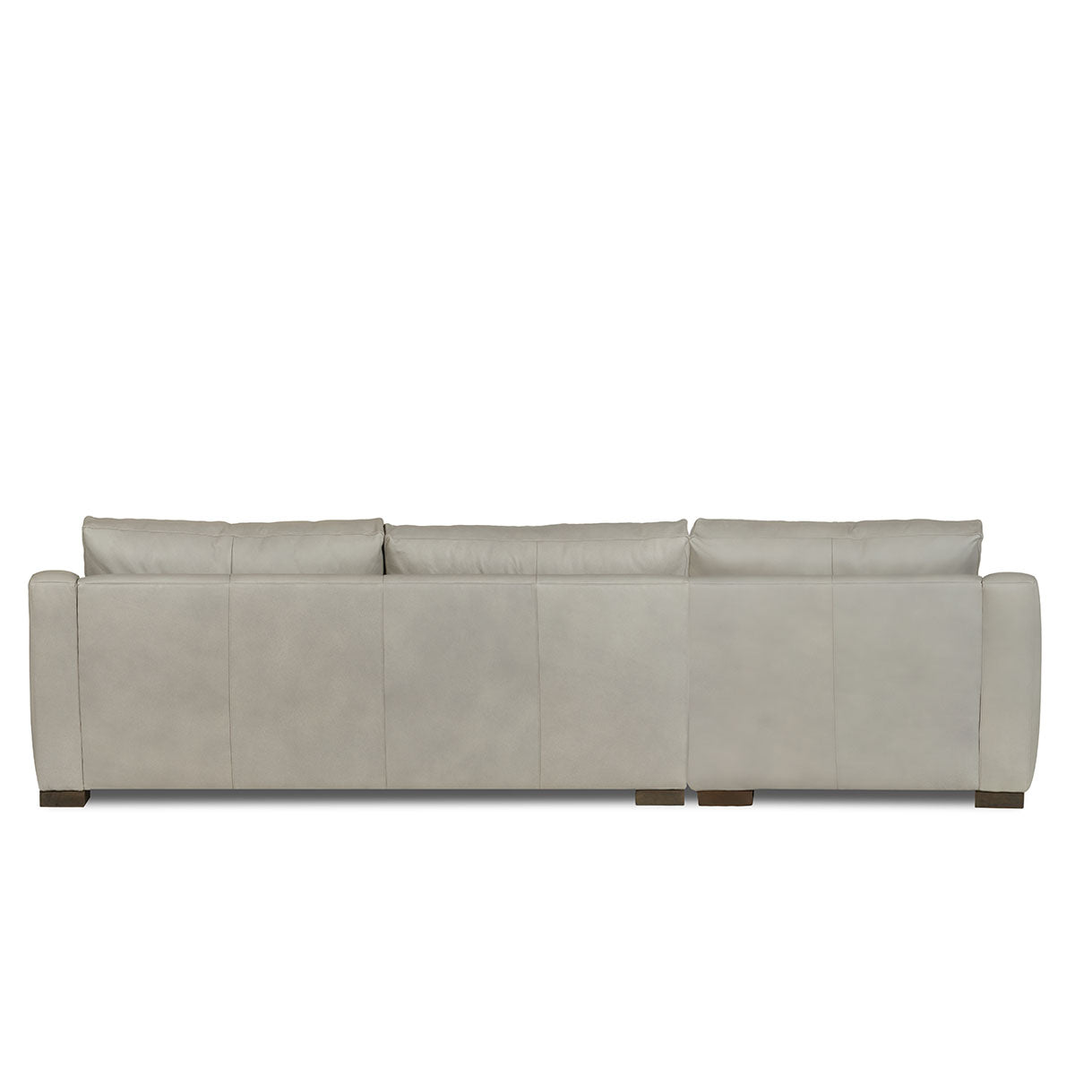 Classic Home Furniture's pieces are crafted using high-quality materials to ensure durability and longevity. This Item is Rivera Sofa with LAF Chaise, Slope Arm, Landscape Leather, Silver
