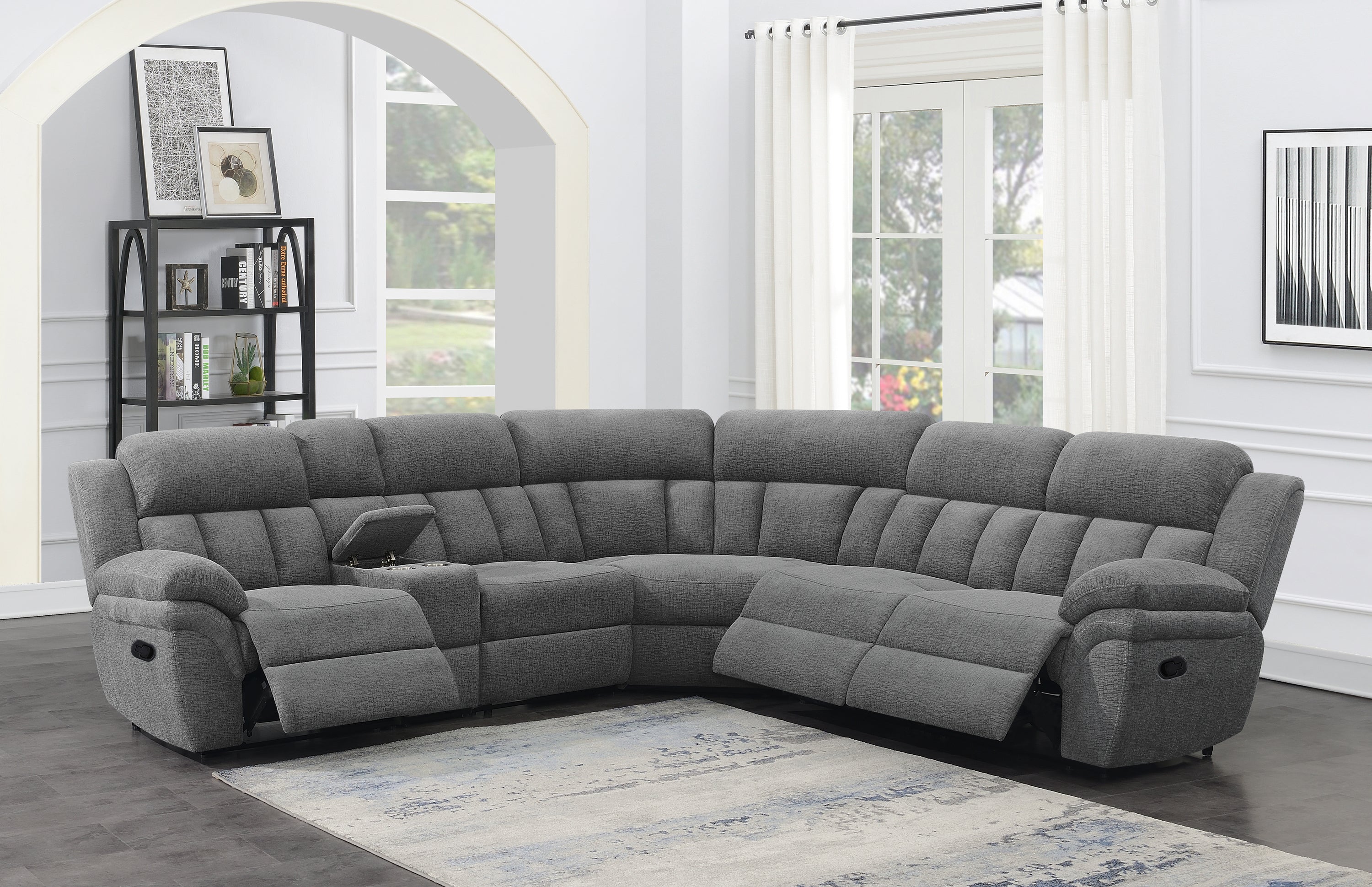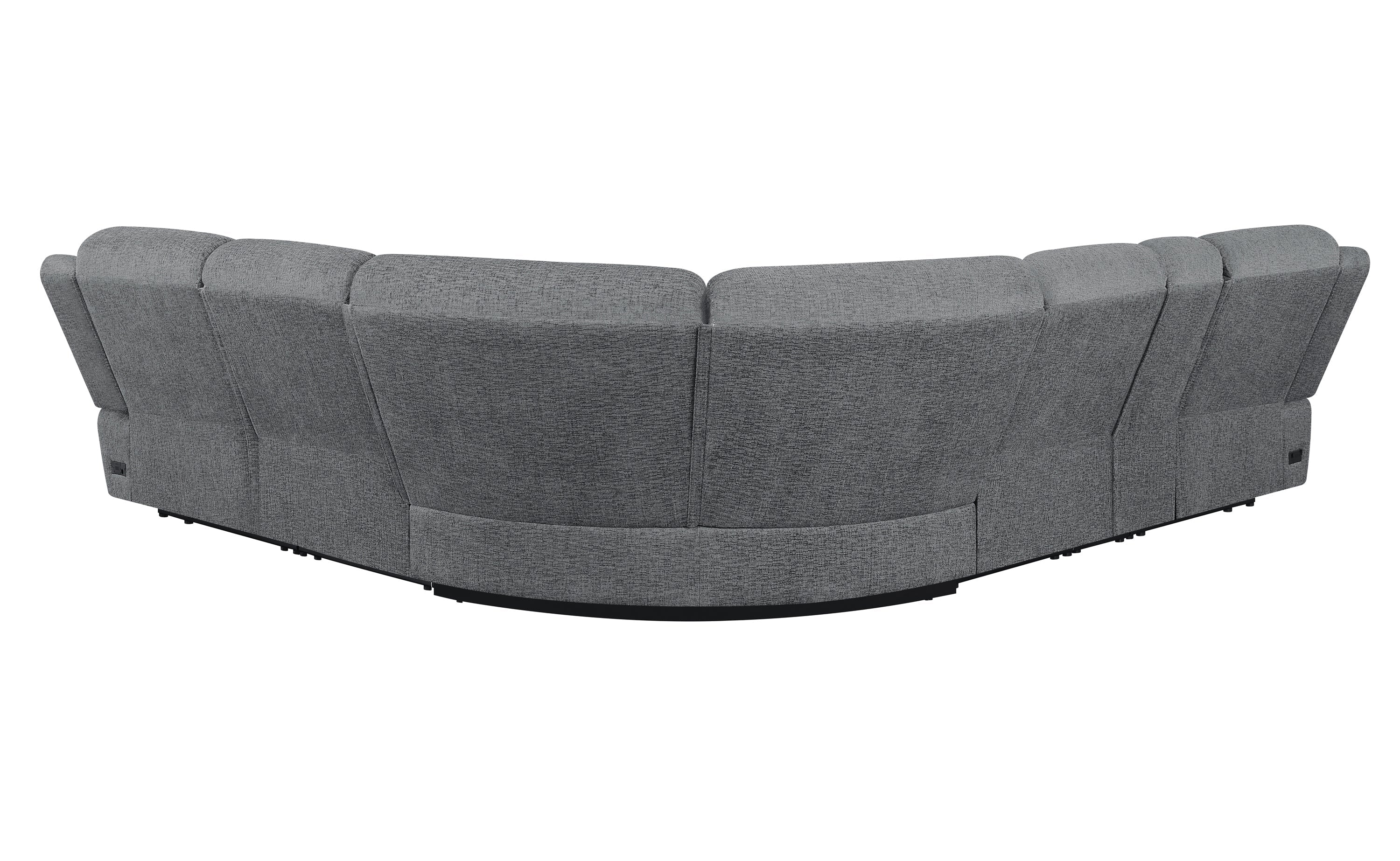 The perfect addition to an entertainment room or spacious living room, this expansive six-piece modular sectional seats up to five people. Wrapped in a charcoal performance chenille, this sectional is soft to the touch. With manual recline options, this furniture piece features three wall-hugging reclining seats. For added convenience, there is a single lift-top console for extra storage, as well as two stainless steel cup holders for keeping refreshments close at a hand. Beneath the upholstery is supportive pocket coils and a cool gel memory foam topper.