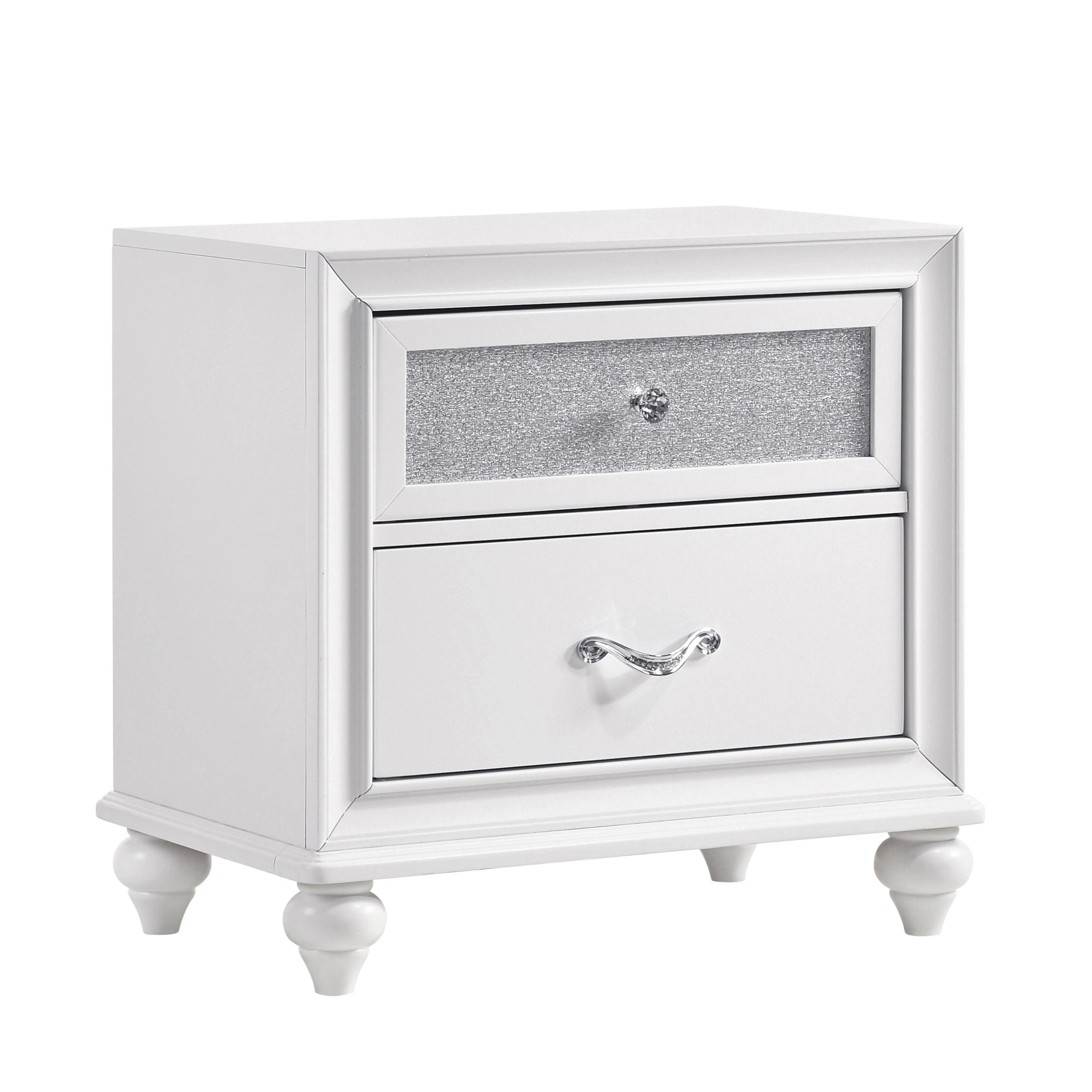 This majestic upholstered bed in soft white velvet, accented with crocodile textured white leatherette and individually hammered silver nailheads will add a touch of elegance to your sleeping environment