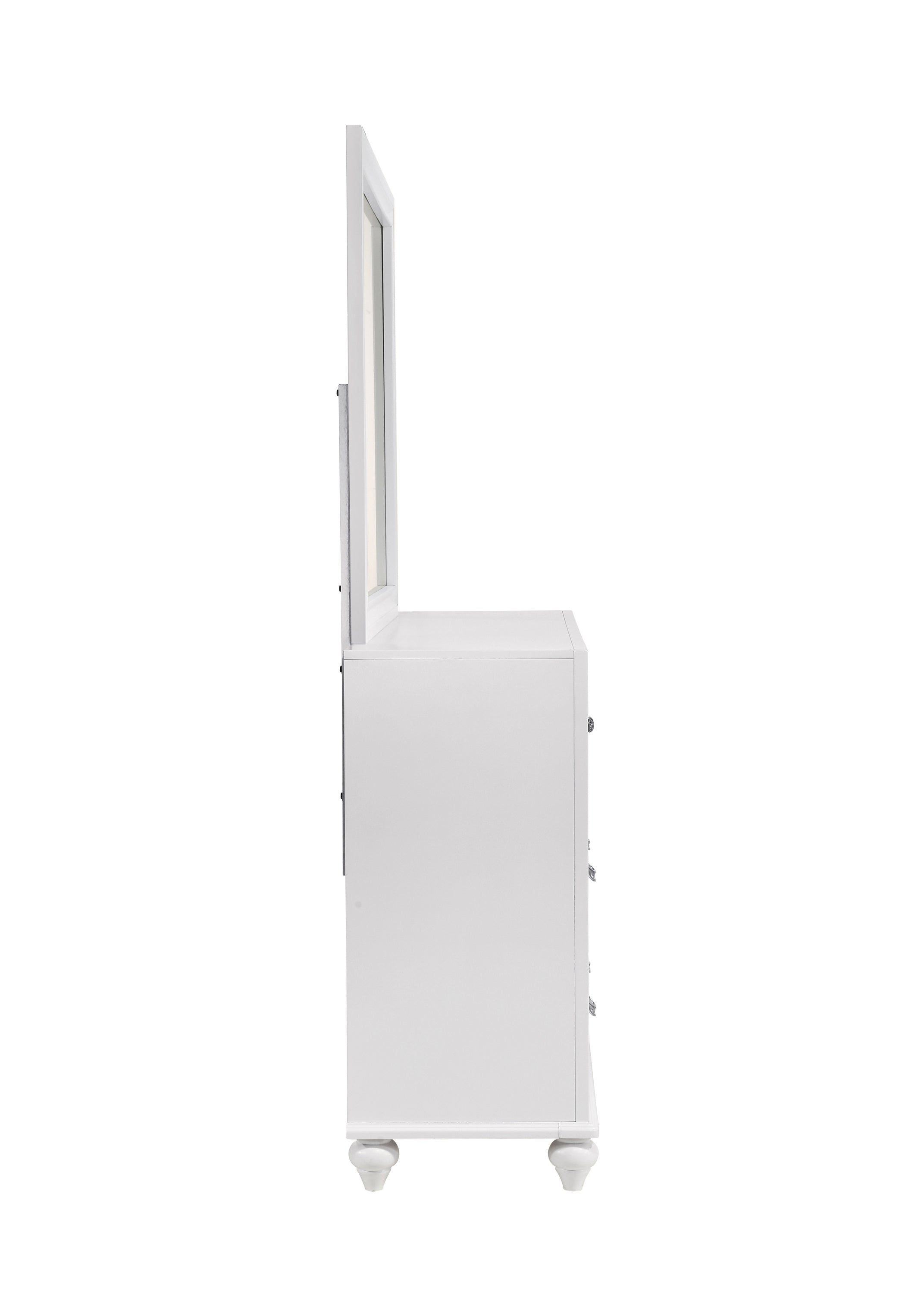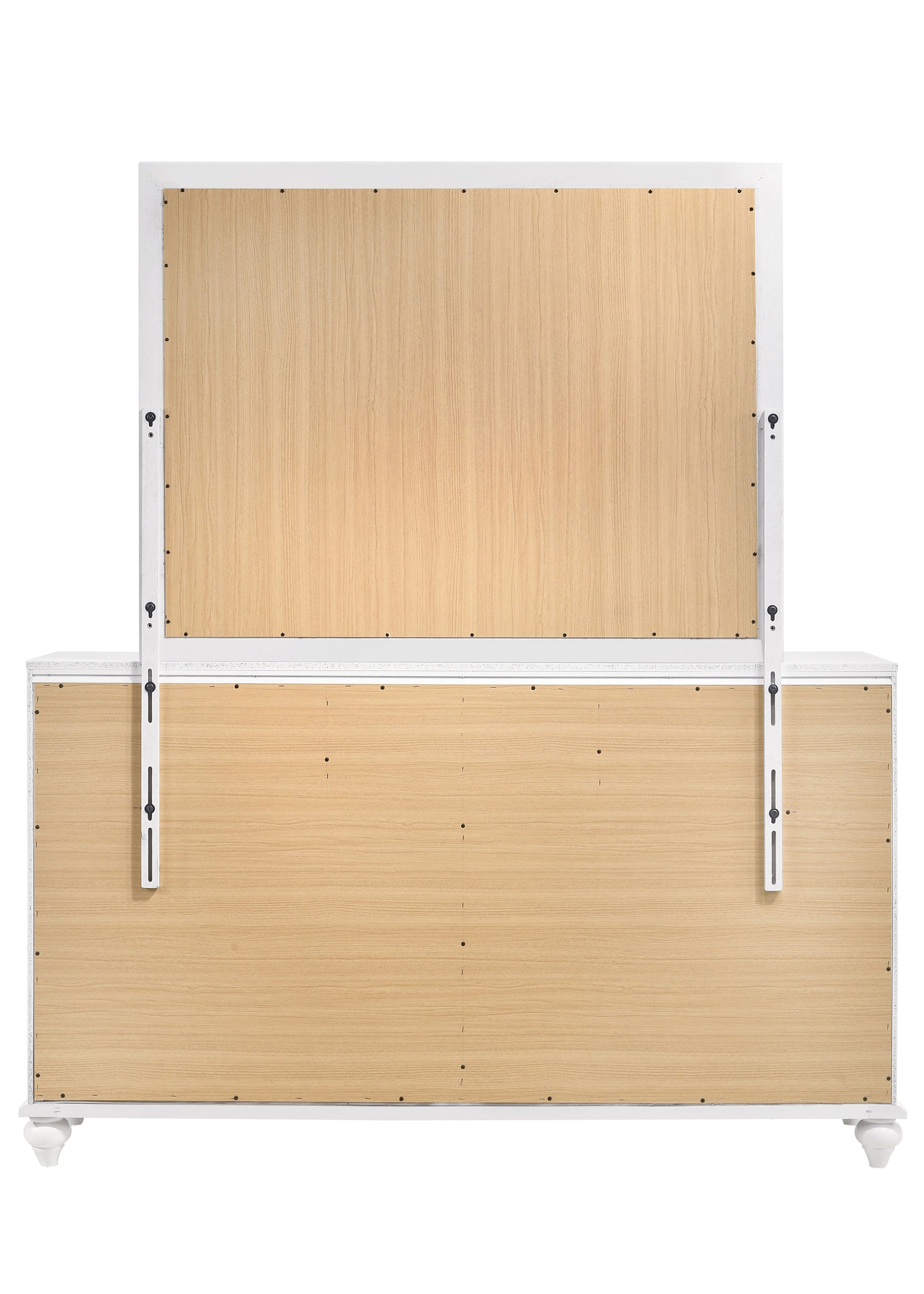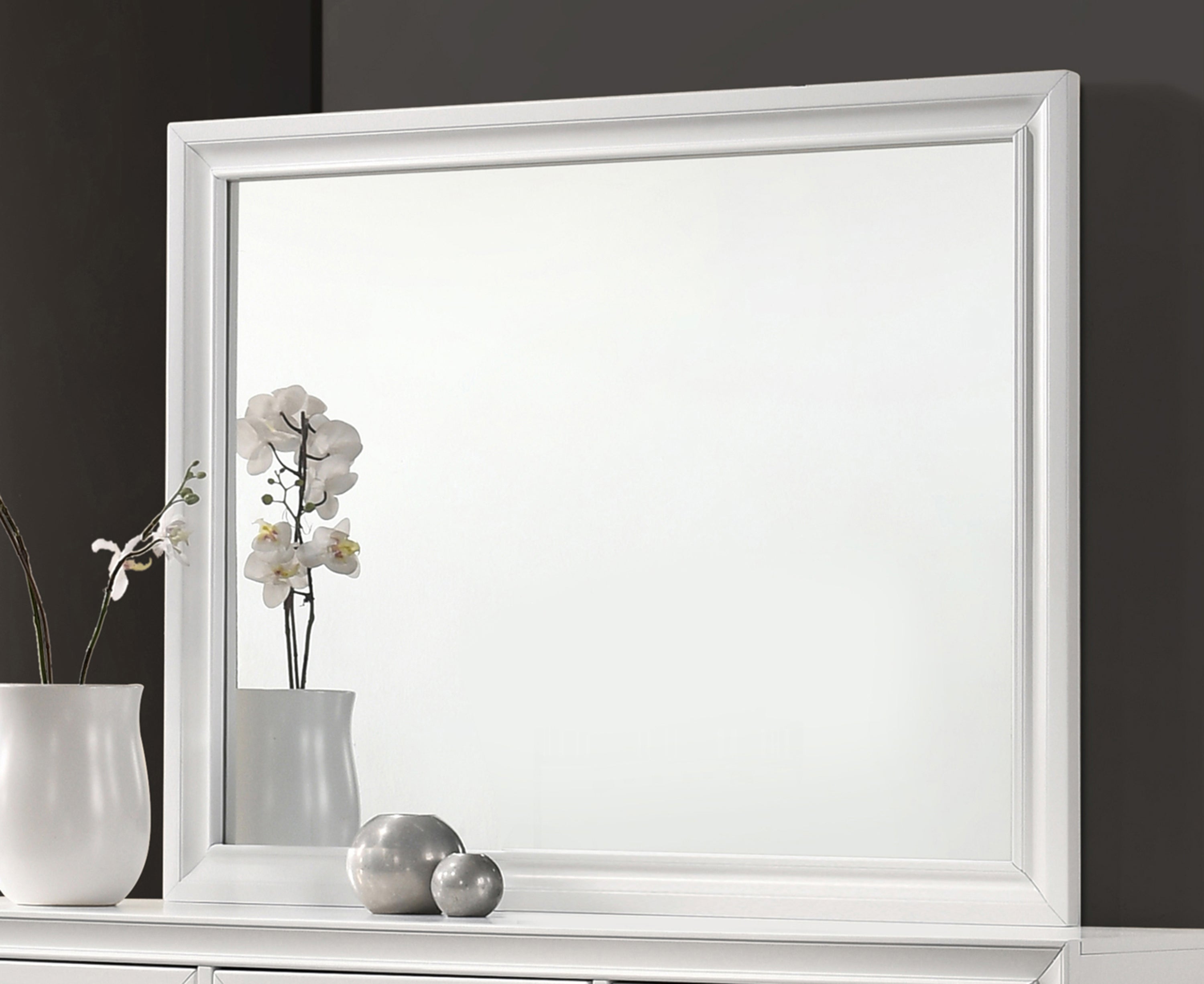 Balance out a bedroom with this gorgeous, rectangular mirror. Its wooden frame is beautifully beveled for a visually appealing appearance. A crisp, white finish gives it a light, airy look. Top-quality craftsmanship ensures maximum durability. Pair it with a matching dresser to bring any bedroom to life.