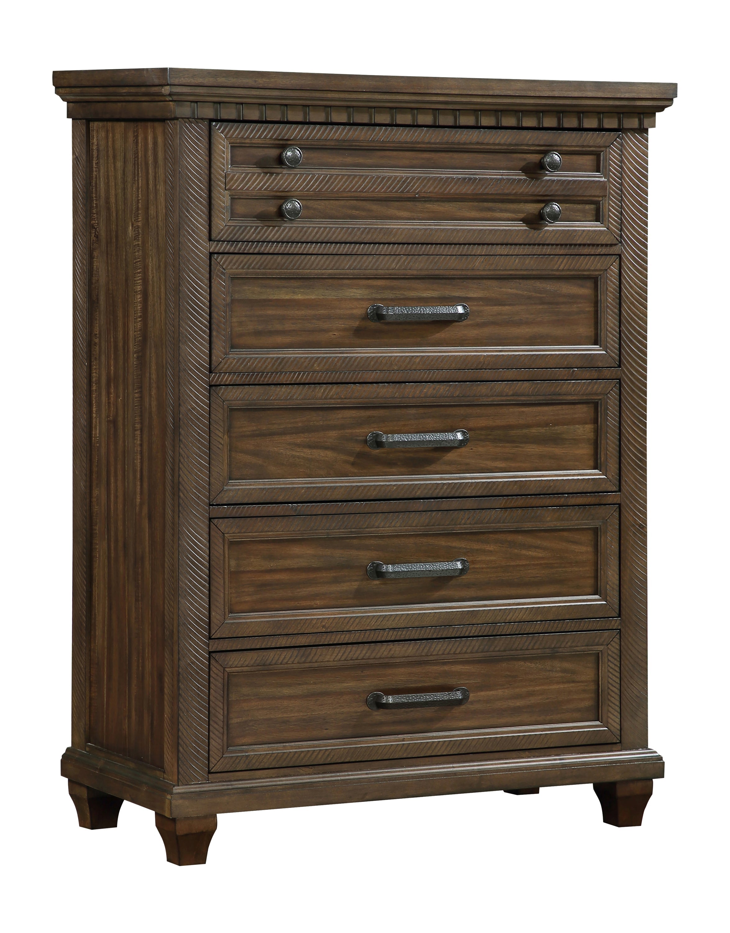 A chic mix of traditional and farmhouse navigate a classic style with vintage influence, ideal for bedrooms in need of a versatile and beautiful aesthetic. Choose this wood bed as a central focus in a master or guest suite, making a signature statement with dramatic disposition. Crafted of acacia and poplar woods and fortified with wood products, its Acacia Brown finish is rich and inviting. An extra tall, paneled headboard and mid-height matching footboard create a sense of grandeur, embellished with dentil molding to fashion dimensionality. This bed delivers a long-lasting aesthetic with flexibility and comfort to last through future redecorating projects.