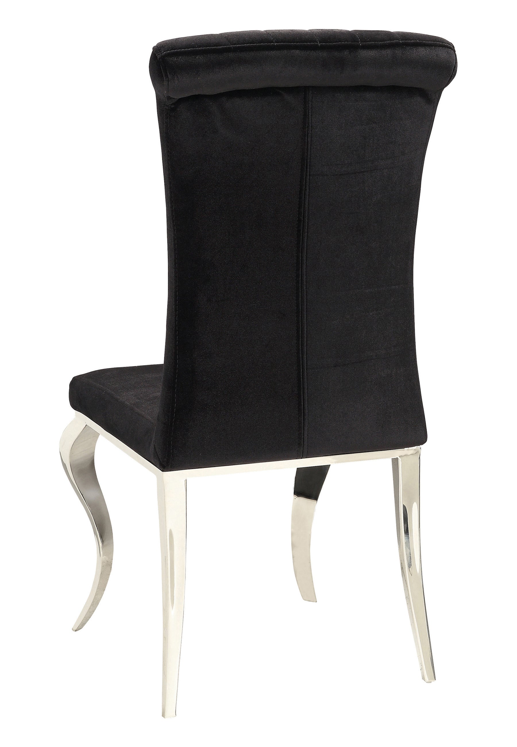 This elegant side chair completes a room in sleek, sophisticated style. Its front legs boast a cool, quirky, curved design for an unexpected touch of creativity. All four legs are finished in chrome, adding a brilliant hint of shine. Its seat is upholstered in soft, luxe velvet, giving it an exquisitely appealing texture. This chair is available in multiple colors, giving you a variety of options to enhance your home.