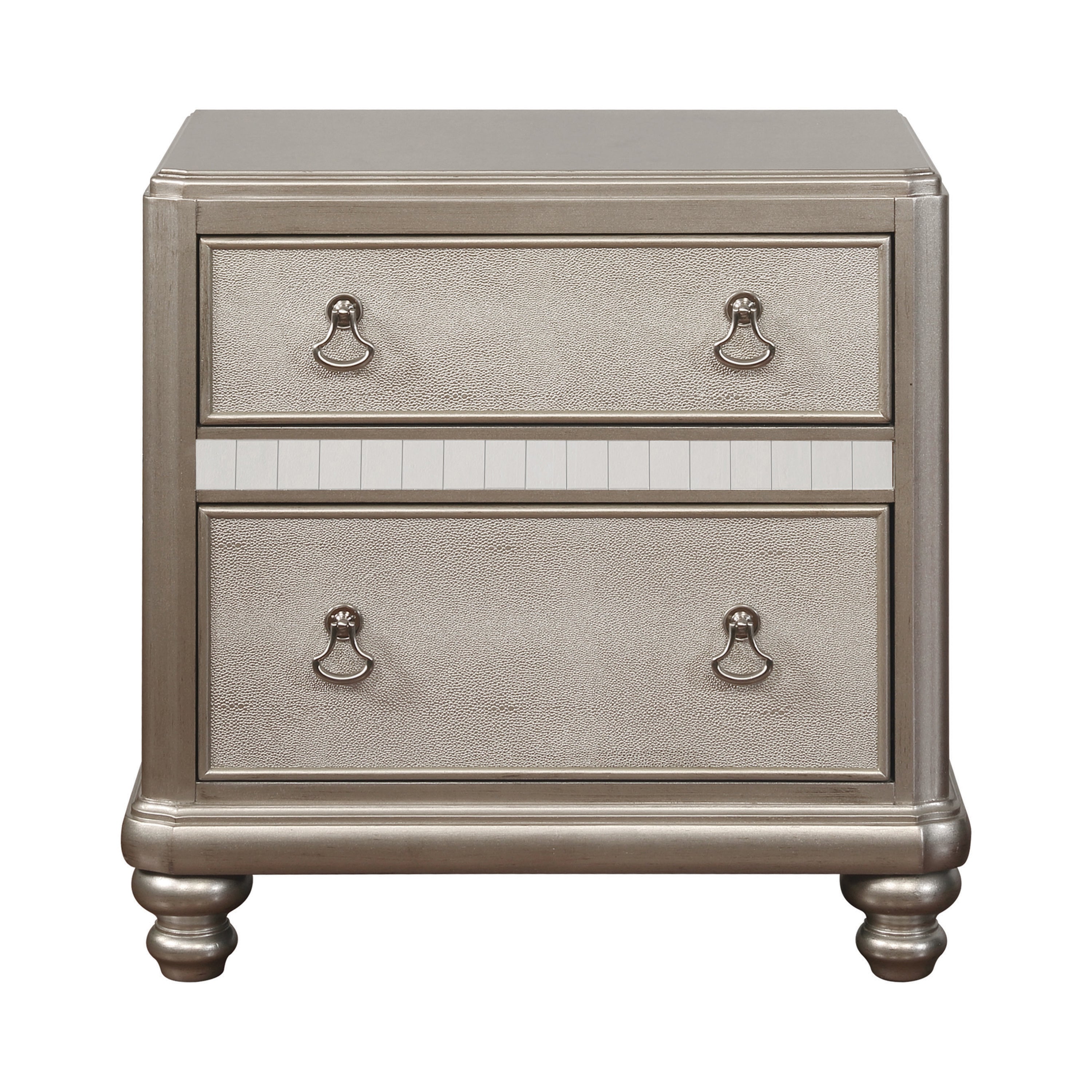 Glamorous platinum metallic finish features a hand-applied highlight glaze