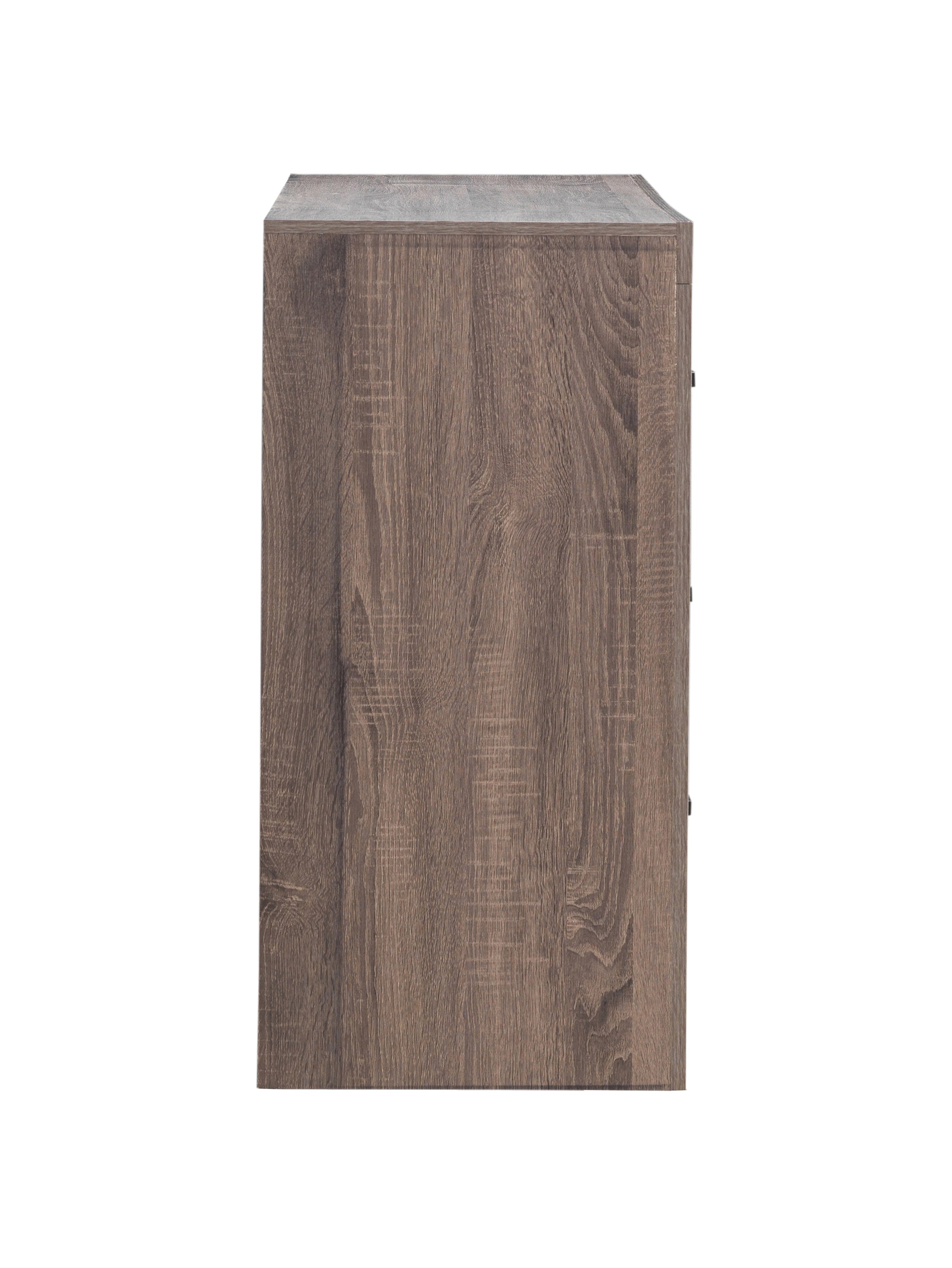 Bold and contemporary, this wooden dresser freshens up a bedroom with cool, modern appeal. This piece is crafted with a 3D paper veneer for added quality and easy maintenance. Dark bronze handles top each drawer to add a classic element to its modern look. The deep storage drawers easily accommodate a wide variety of wardrobe essentials. This beautiful dresser is available in multiple finishes to easily blend with any palette.