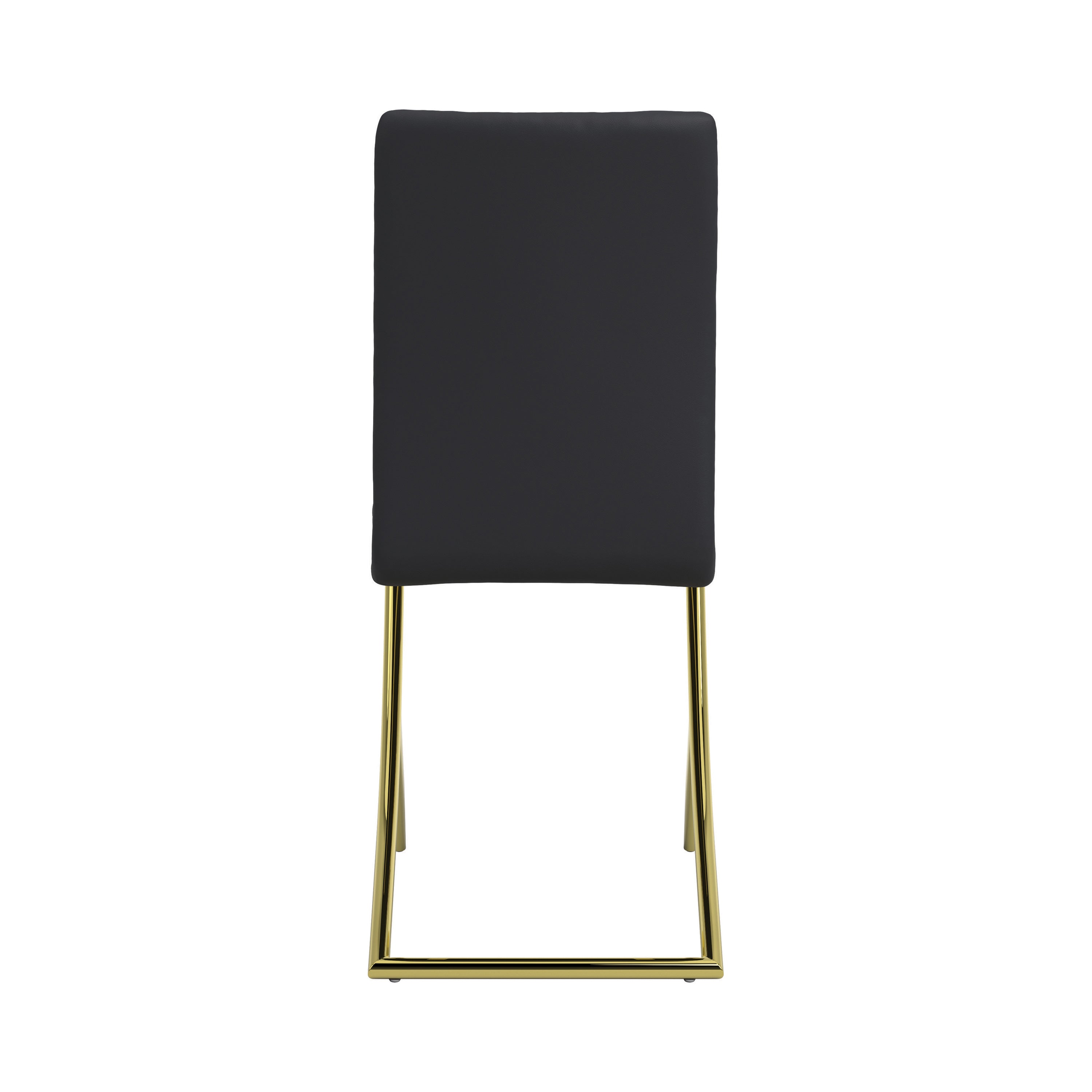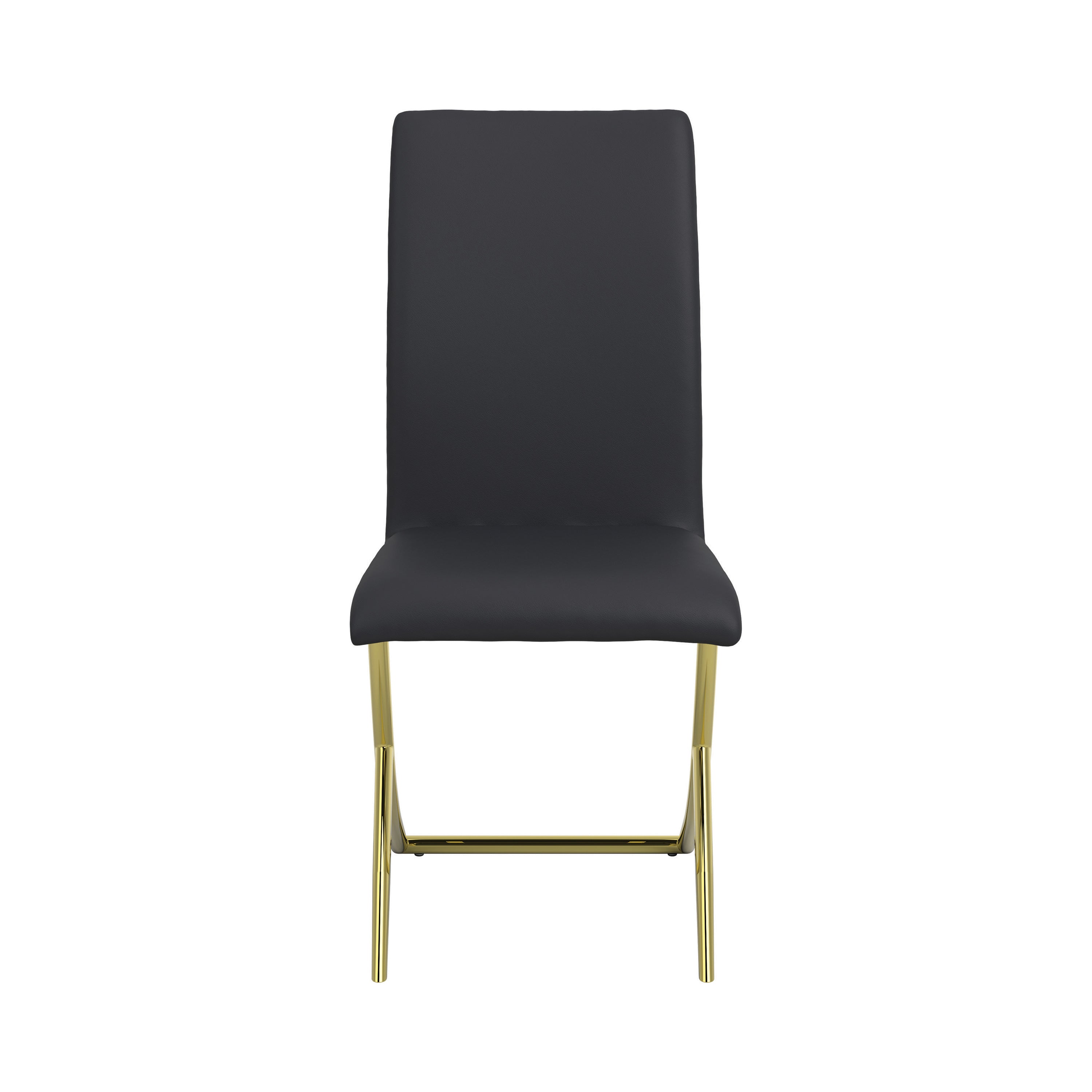 Embrace contemporary elegance in the dining room with this armless dining chair. The sleek design boasts a gracefully contoured leg frame with an upholstered seat and back. The classic glamour of a shiny brass finish on the legs complements the leatherette upholstery. Choose the color that suits your decor, or mix and match for a fun look. Perfect with a glass top dining table for a dramatic contemporary feel.