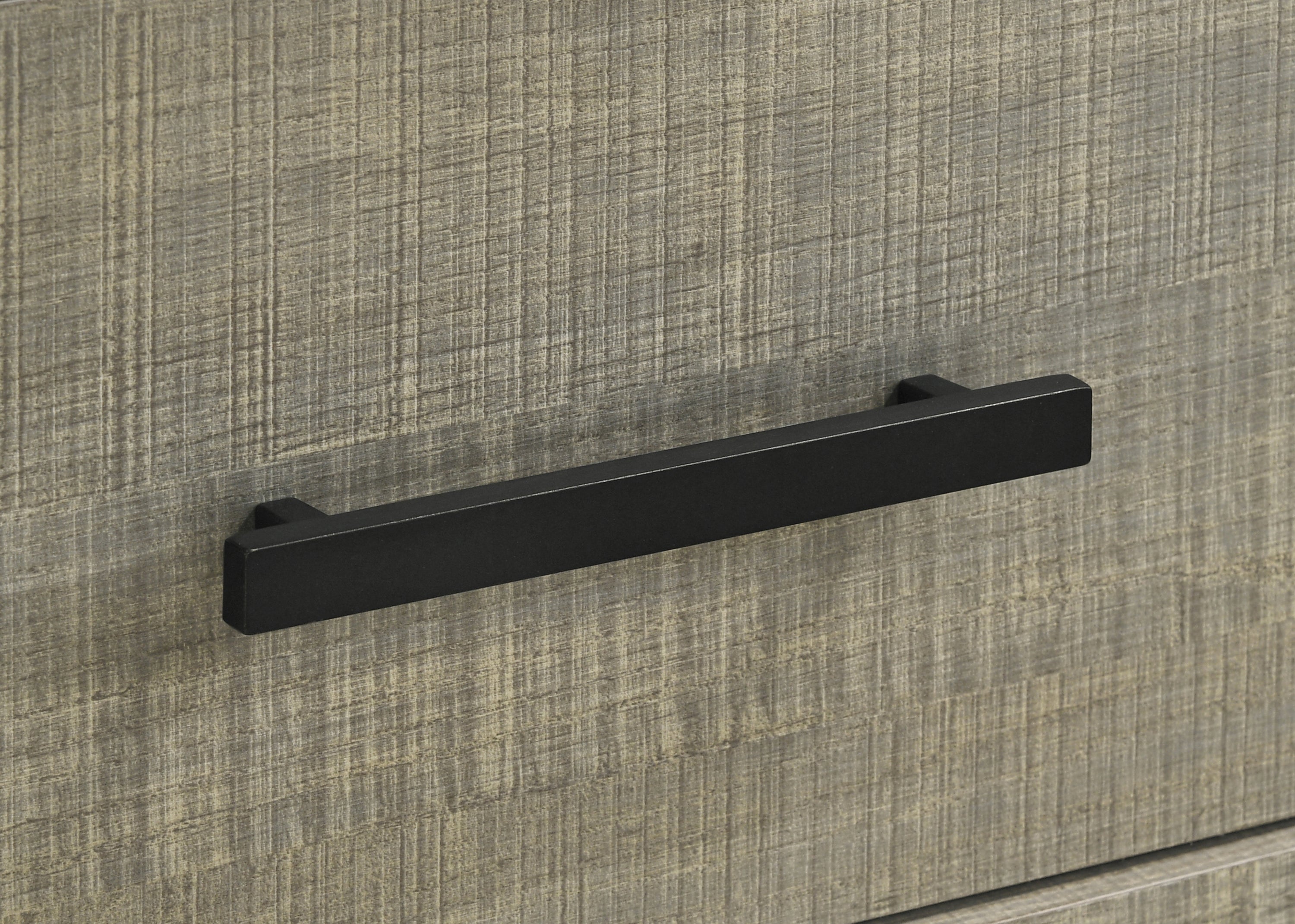Turn a conventional bedroom into a relaxing transitional haven with this elegant bed. Choose its neutral rough sawn gray oak finish to retain versatility while updating any master or guest suite with an anchor piece designed to inspire. Contemporary rustic vibes shape a bed with an extra high headboard featuring vertical slats and wrap-around rails and footboard. This tasteful bed serves as a partner to matching or coordinating case pieces and accessories. Constructed of Asian hardwood, wood products, and melamine.
