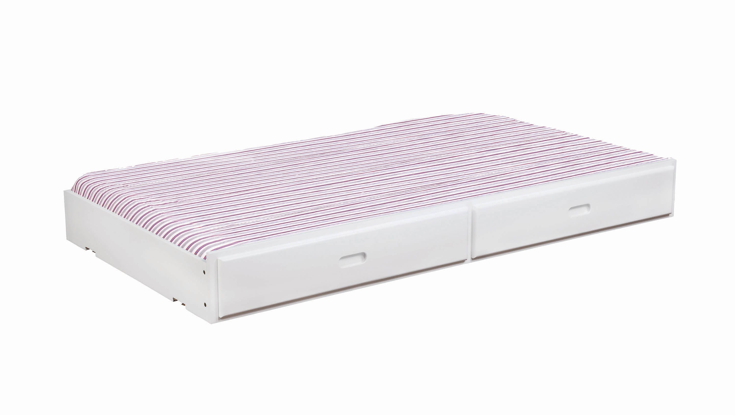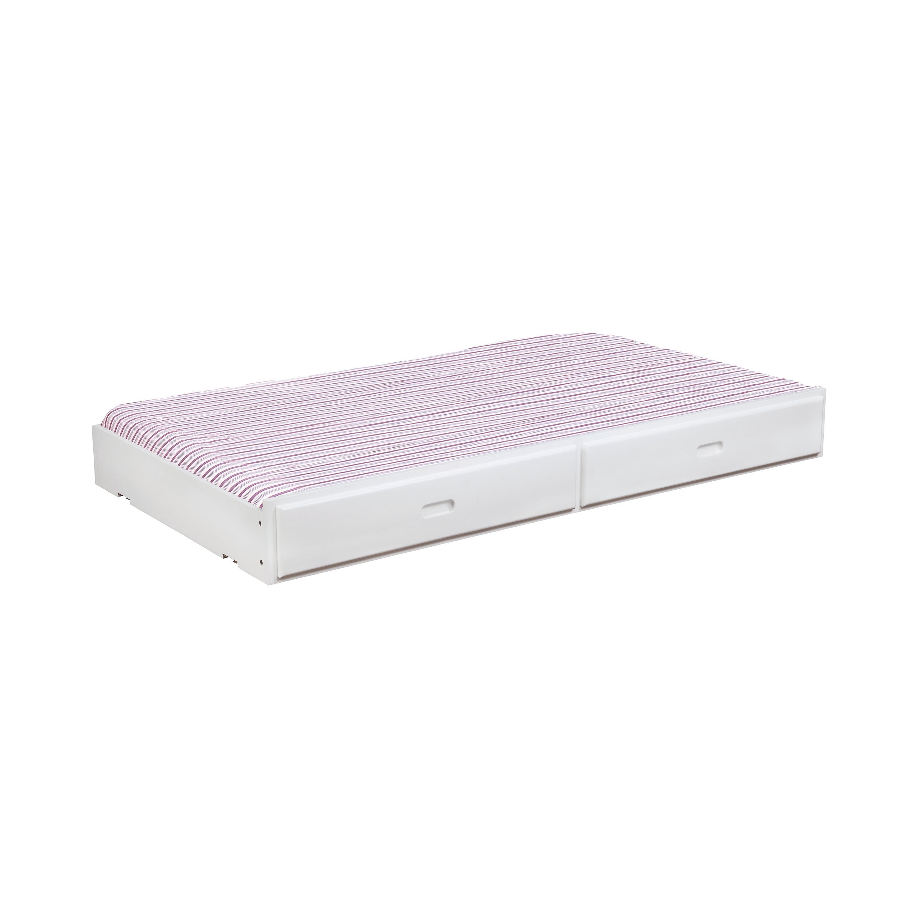 The ultimate space saver, this universal storage trundle easily converts between a storage drawer and trundle bed. Crafted of solid pine, this piece includes six-piece slats and plywood boards. Sleek and smooth, the flat fronts feature smooth built-in handles that don't protrude for fun play time. Separate the drawer into two sections to organize extra linens and toys effortlessly. Bunkie board not required, this stylish storage trundle works well with a variety of decor motifs.