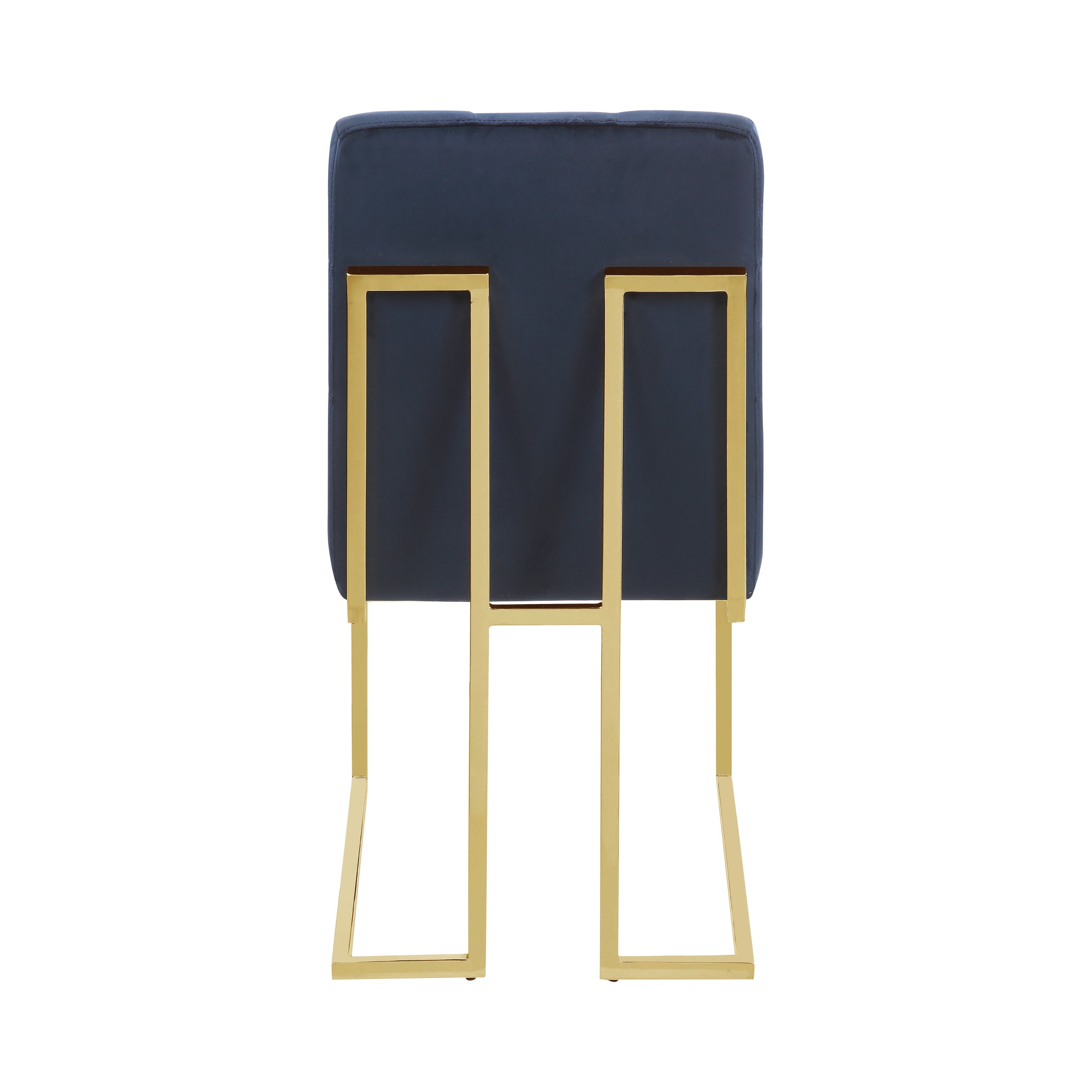 Assembly required: YesBold color and radiant metallic from this armless dining chair create a stunning visual. Arranged elegantly, sleek and metallic gold legs create an open feel. Plush blue cushions fill the seat and back, elevated with button tufts. Bold colors and angles meet to create a luxurious piece that adds style and comfort. Dine with a chic, art deco-inspired twist.