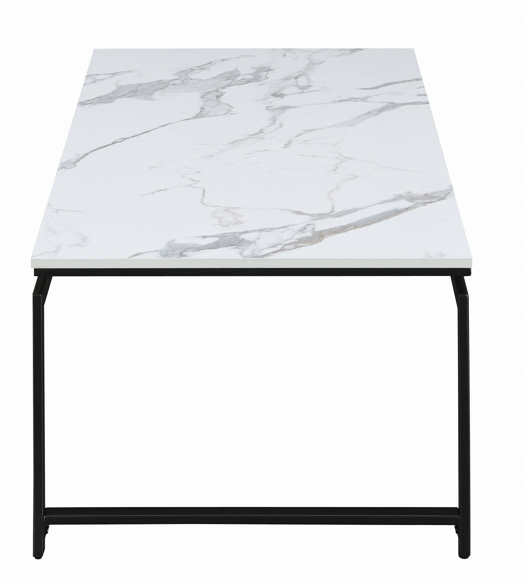 Marble is a stunning and coveted material for the home, but can be demanding in its upkeep. This three-piece occasional set of tables solves your maintenance worries with its realistic easy-care surface, while you benefit from the realistic look of this natural material. Dark gunmetal legs provide a gorgeous foil for the creamy faux marble table tops. The three occasional tables work handily together or in separate rooms in your home. Their size and appearance lend themselves to a stylish presence in a living room, dining room, guest room or even an upscale bed or bath.