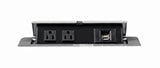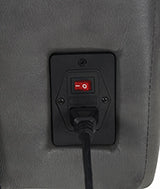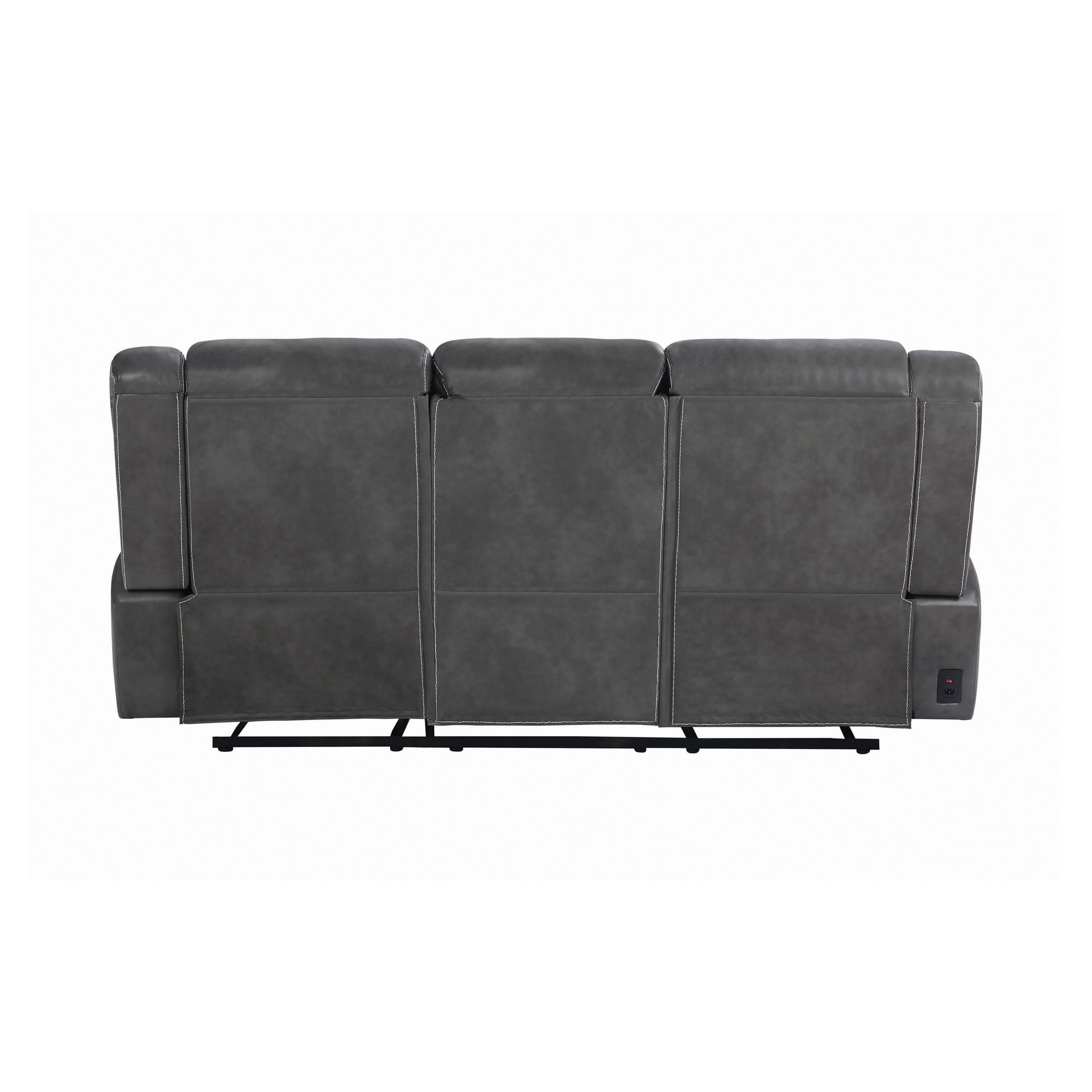 Sofa features drop-down table with pop-up power outlet (2AC/2USB), two (2) cup holders, and storage drawer