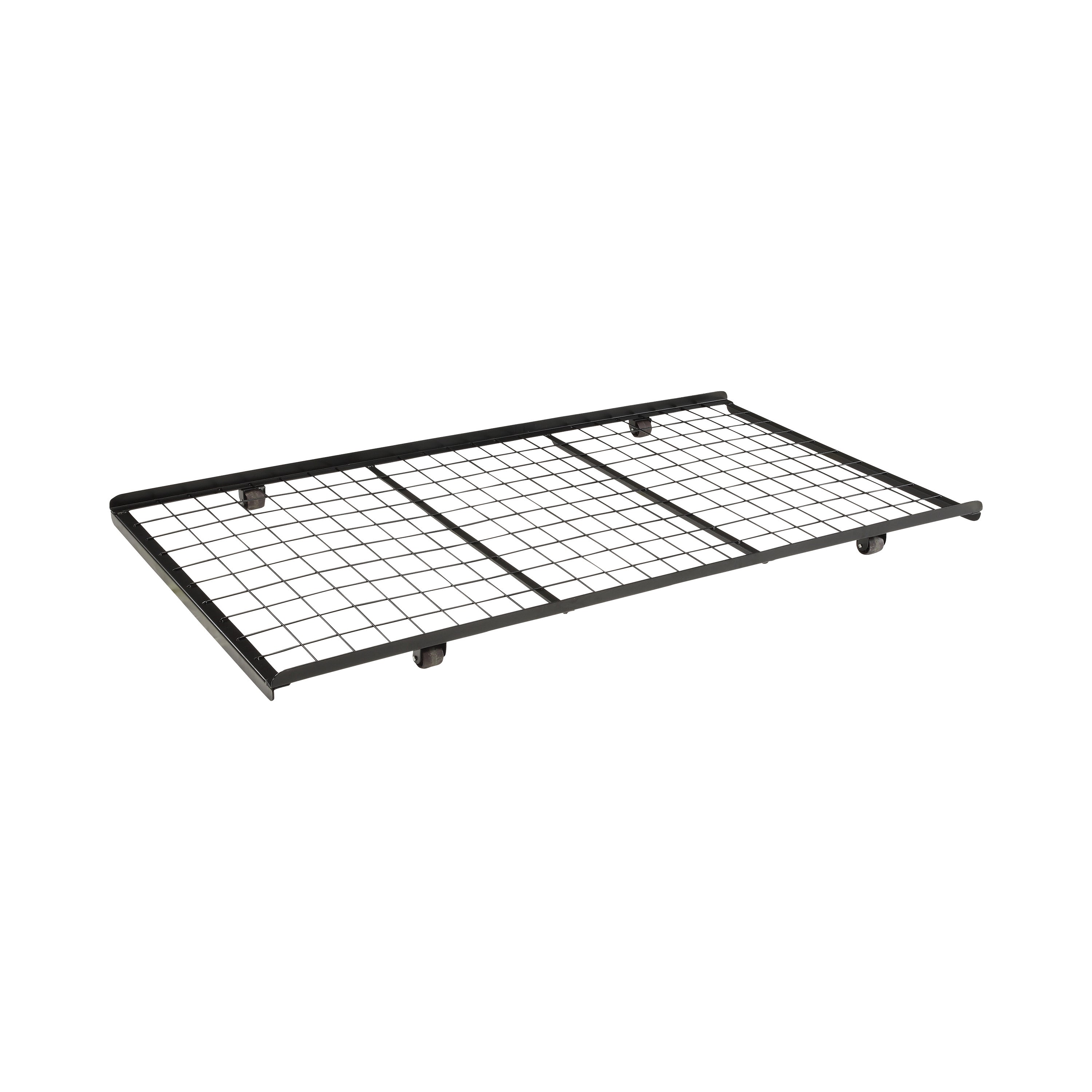 Simply slide to add comfortable sleeping space for friends and family. This roll-out trundle bed frame hosts a twin mattress (not included) and tucks away underneath a standard bed. The roll-out trundle is equipped with casters for easy movement. It remains on the floor, perfect for kid's sleepovers or other overnight guests. Black finish is neutral in any decor.