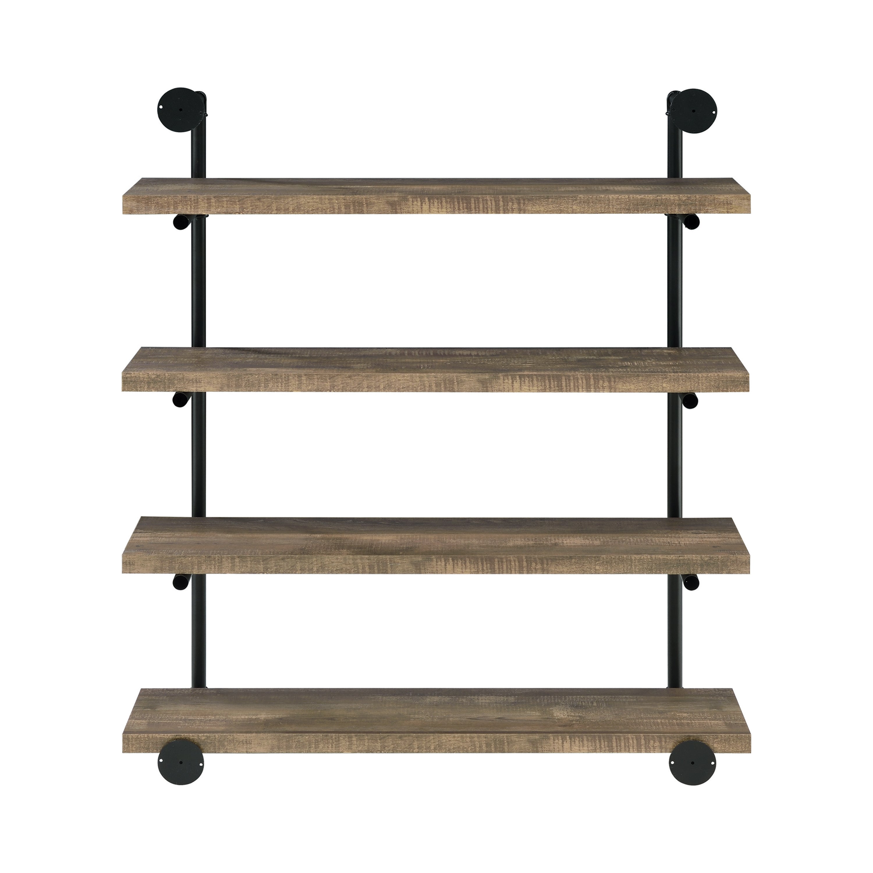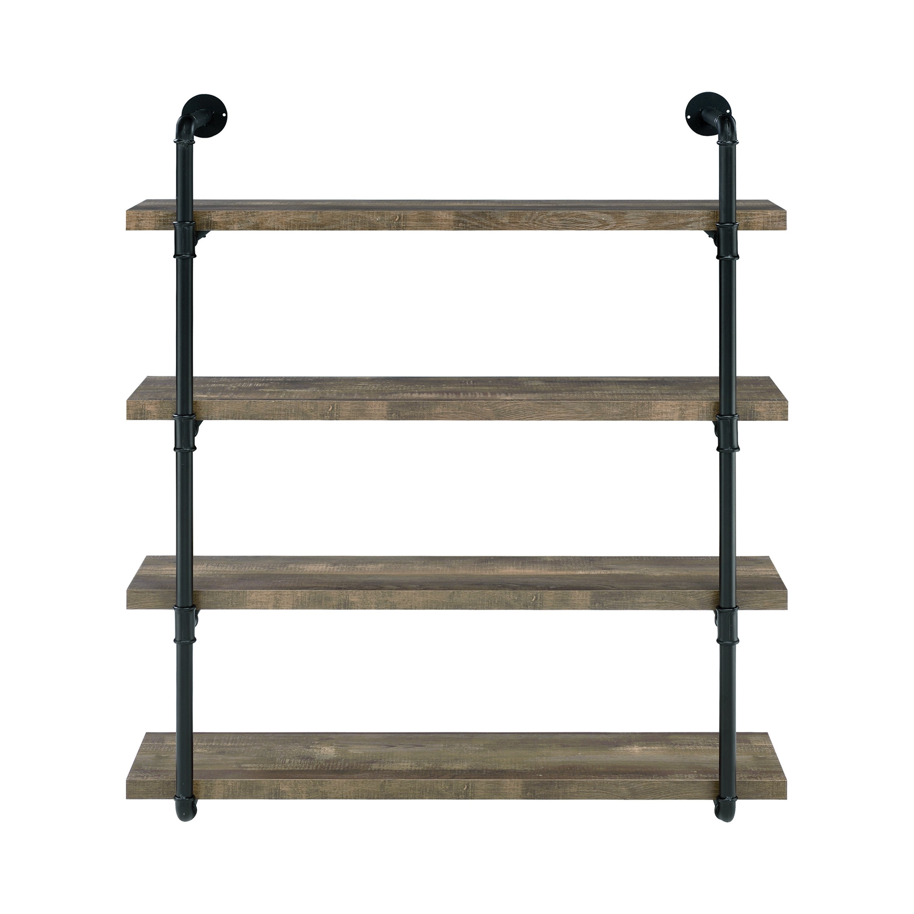 Industrial design can be elegant, as shown by this wall shelf. Plumbing pipe frame highlights the rugged utility that's the hallmark of the style. Wall hanging adds a unique element to the piece. Incorporates four (4) open shelves for ease of storage or display. Available in a variety of finishes and widths for your specific style and space needs.