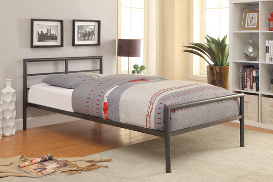 Accentuate the decor of a guest room with elegant simplicity. With a clean, contemporary design, this twin bed lends effortless glamour to any modern bedroom. A cool, gunmetal finish adds an updated edge to its sleek silhouette. Sturdy metal construction offers maximum durability and support. With its compact size, this stylish twin bed is perfect for smaller spaces.