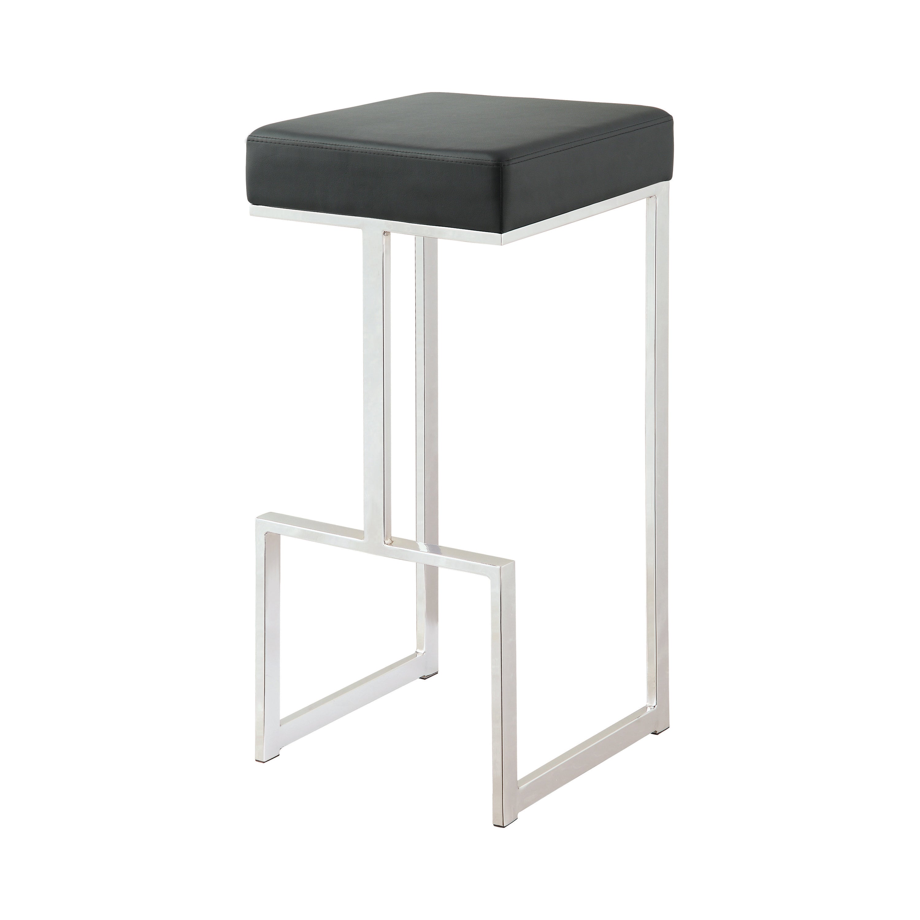Assembly required: YesEnhance your dining space with a cool, contemporary edge. This barstool is crafted with crisp, straight lines for a modern and stylish look. A high-shine chrome finish adds polish and panache. Plush, comfortable padding allows for countless hours of cozy relaxation. Crafted for quality, this stool is as durable as it is beautiful.