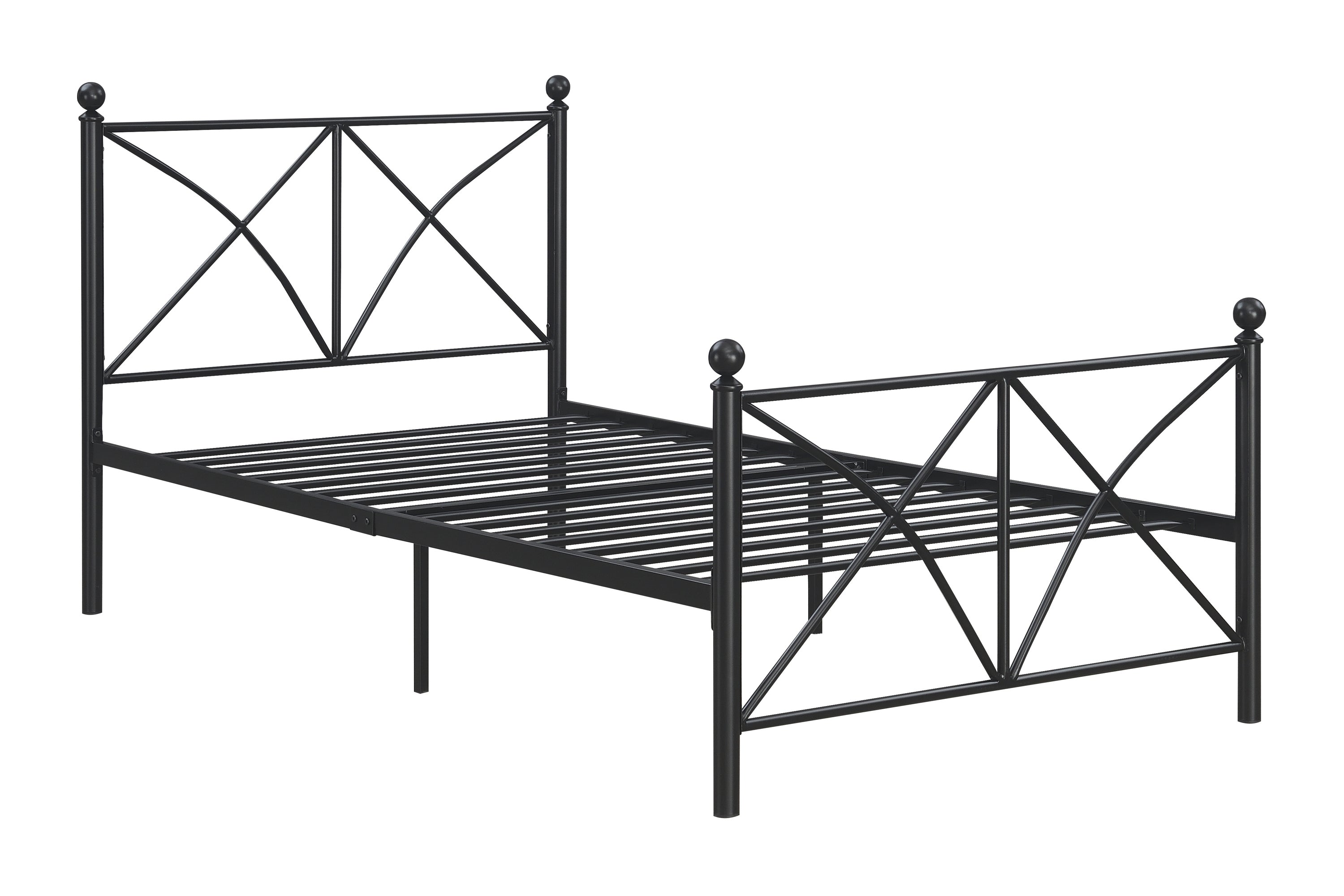 Find chic and sophisticated style with this metal bed. Coming in an assortment of styles and colors, this piece is bound to enhance many sleeping spaces. It's X-style pattern on the head and footboard gives it modern appeal. This metal bed is ideal for using in guest bedrooms and youth bedrooms. With airy appeal and straight legs, choose this bed for function and style in transitional spaces.