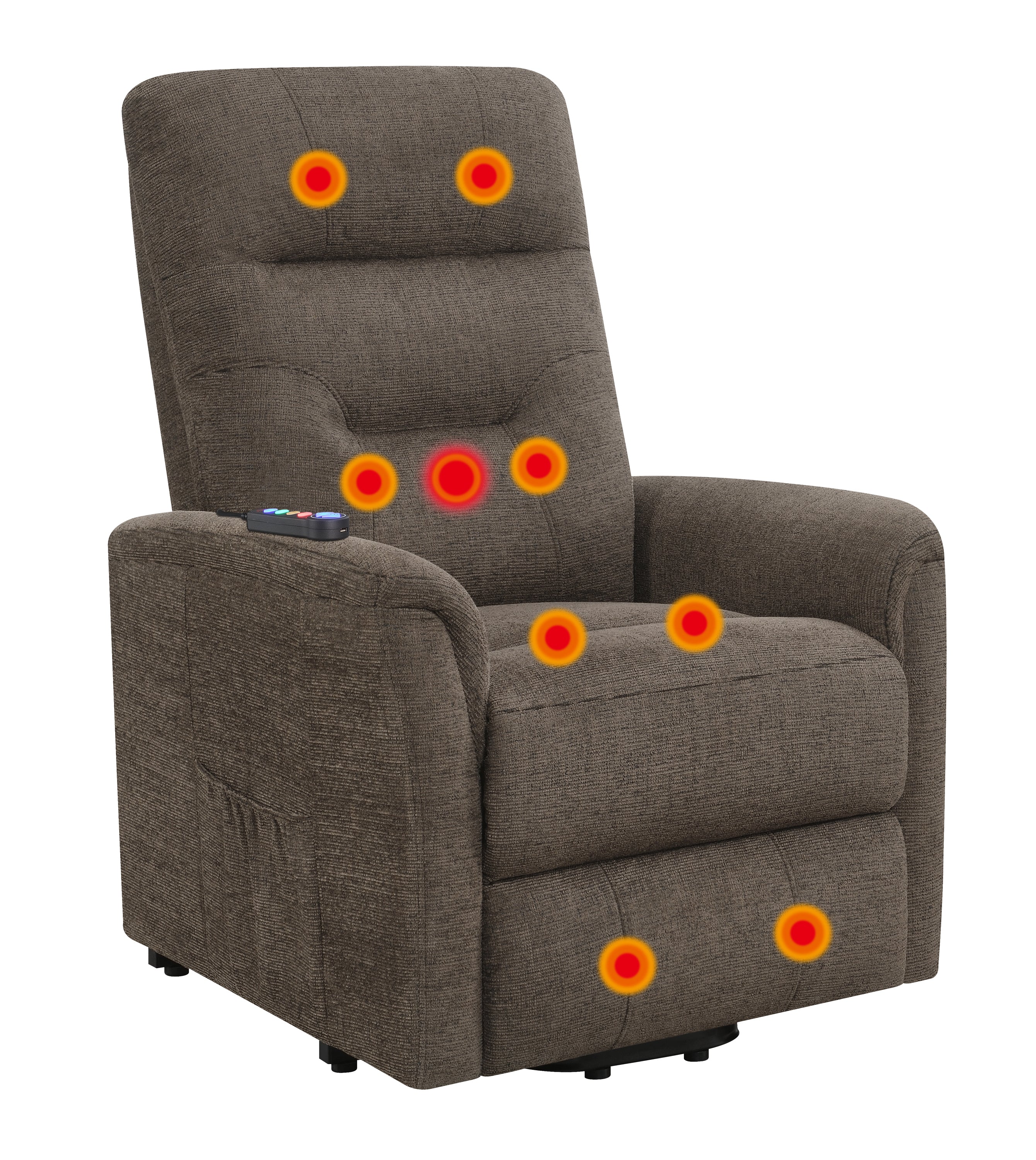 Get on your way for the day and on your feet with this power lift chair. An integrated heat and massage function keeps you feeling your best. A side pocket on each side is available for storing remotes. Meanwhile, charge smart devices with the built-in USB port. This recliner chair is upholstered in a soft microfiber fabric.