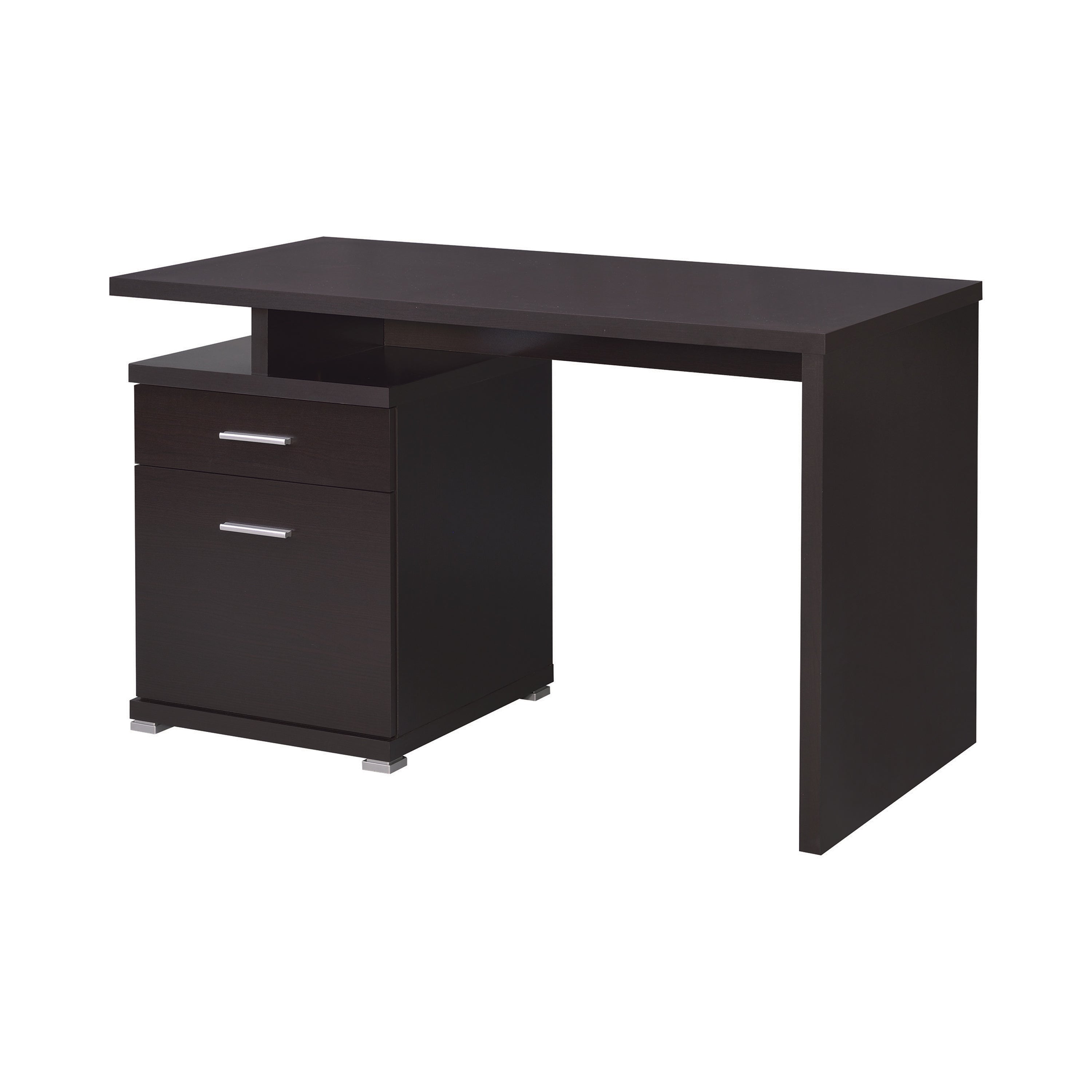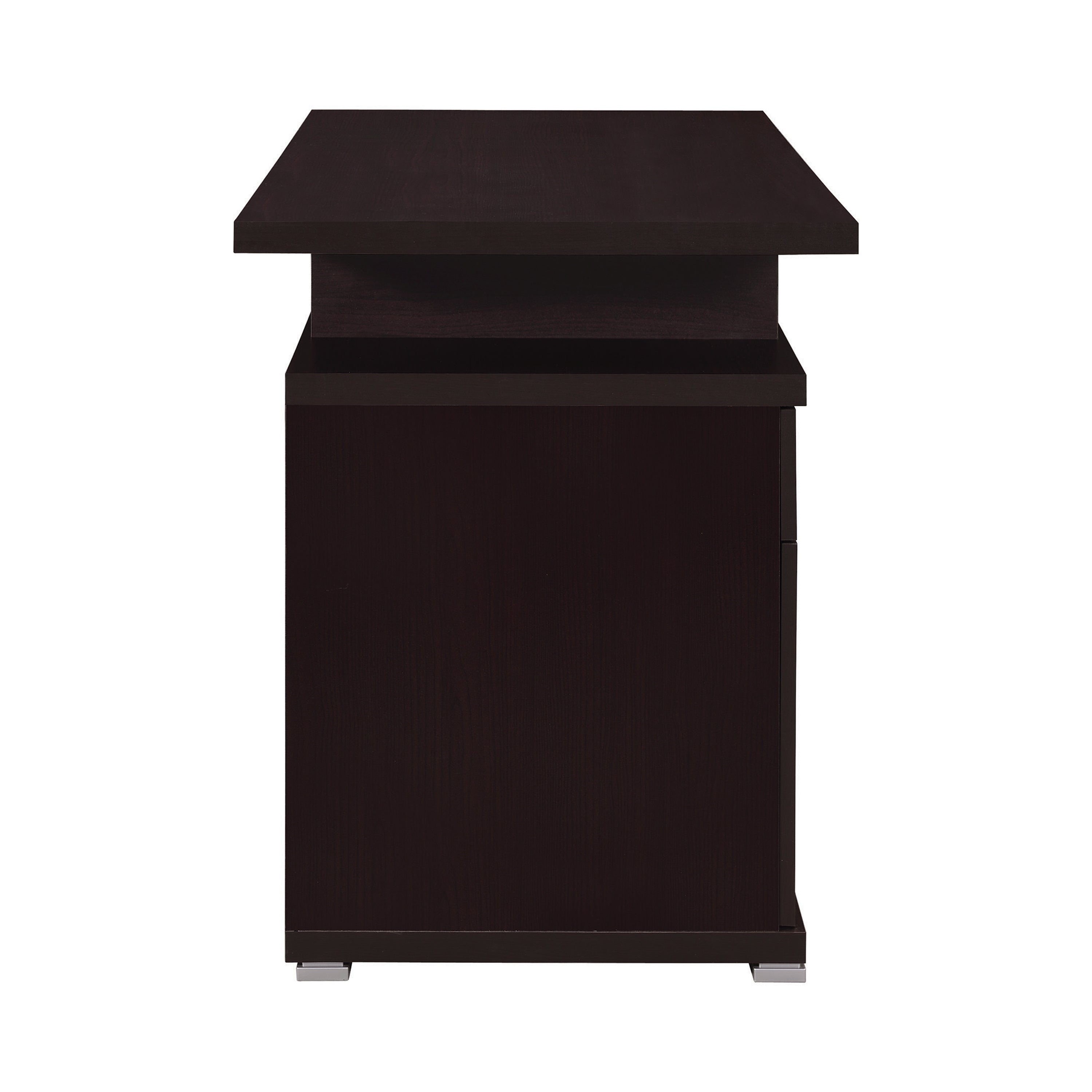 This office desk has everything you need to get the job done right. This convenient cabinet has a reversible set-up to fit the office space as you wish as well as a roomy desktop to get all your work done. It's constructed with durable particle wood, MDF, and engineered veneer. It comes with a file cabinet sized for all your organizational needs, including holding both letter and legal sized files. This desk is suitable for a home office as well as a traditional commercial office space.