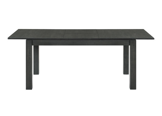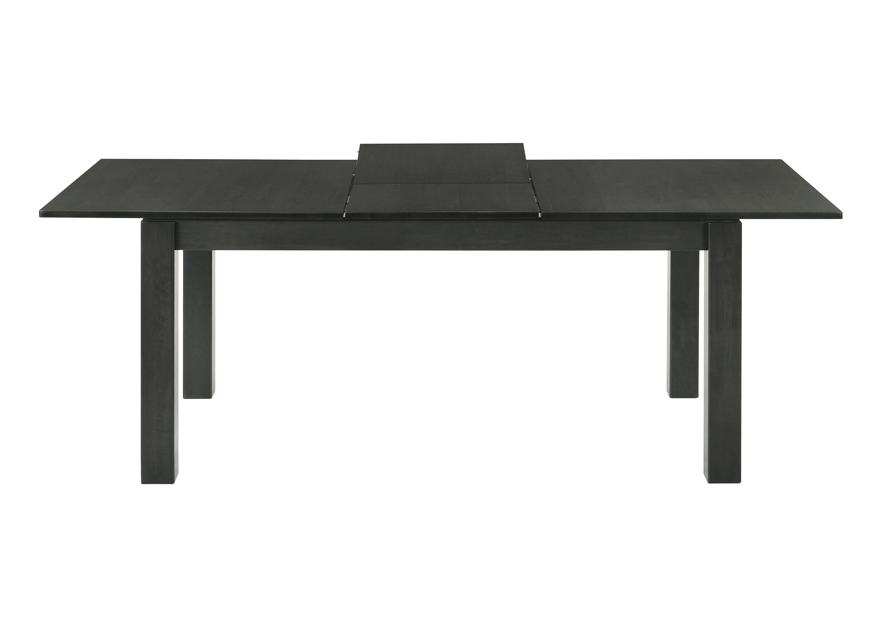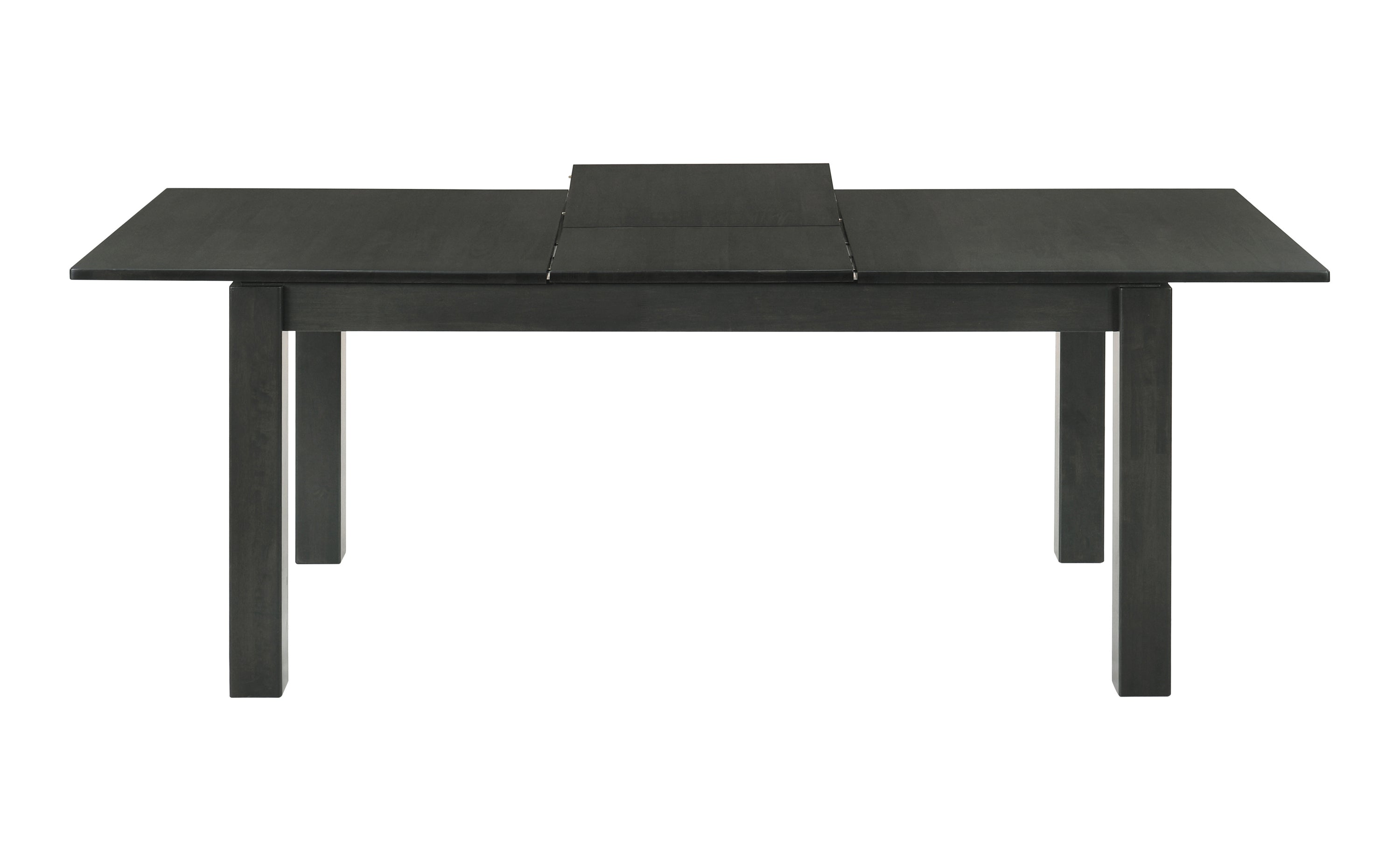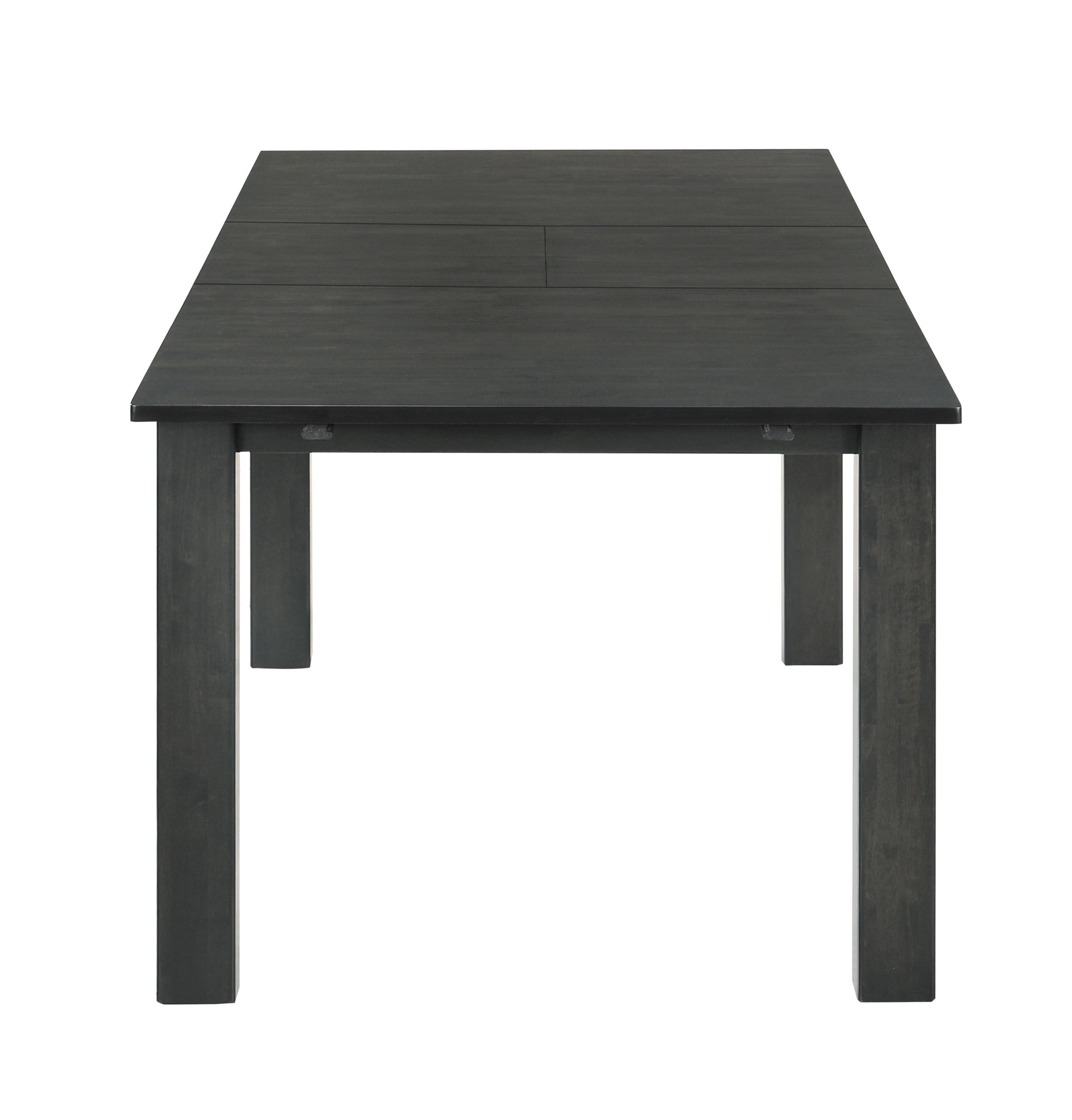 Allow this transitional dining table into a space to create a focal point. A rectangular tabletop offers ample space for serving up meals and having a study session with kids. With an extra 20-inch self-storing butterfly leaf, this dining table extends to host larger gatherings. Its deep black stain finish invites you to decorate a tablescape in bold hues or create a neutral color palette for a modern farmhouse style space. In addition, block style legs offer visual weight and extra stability.