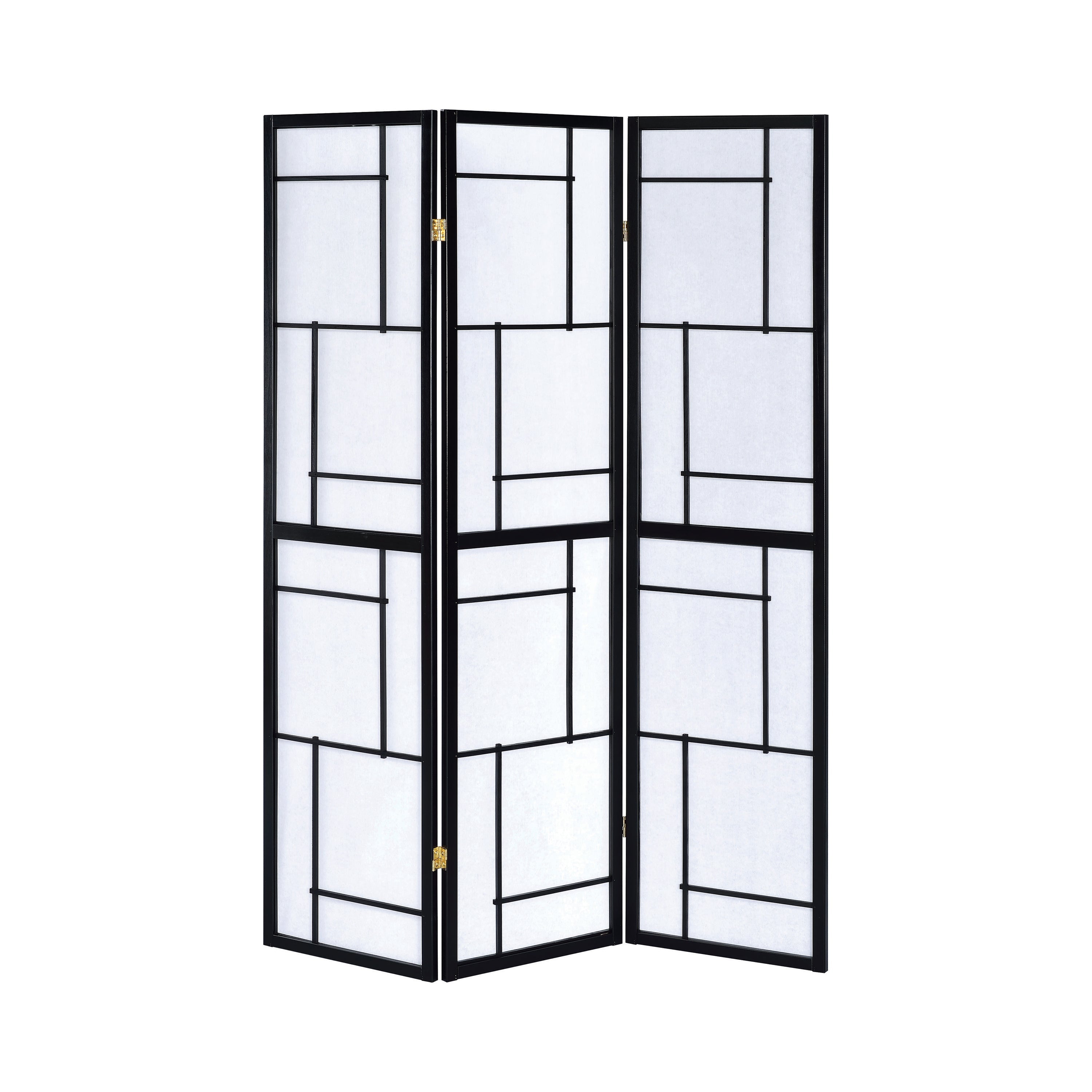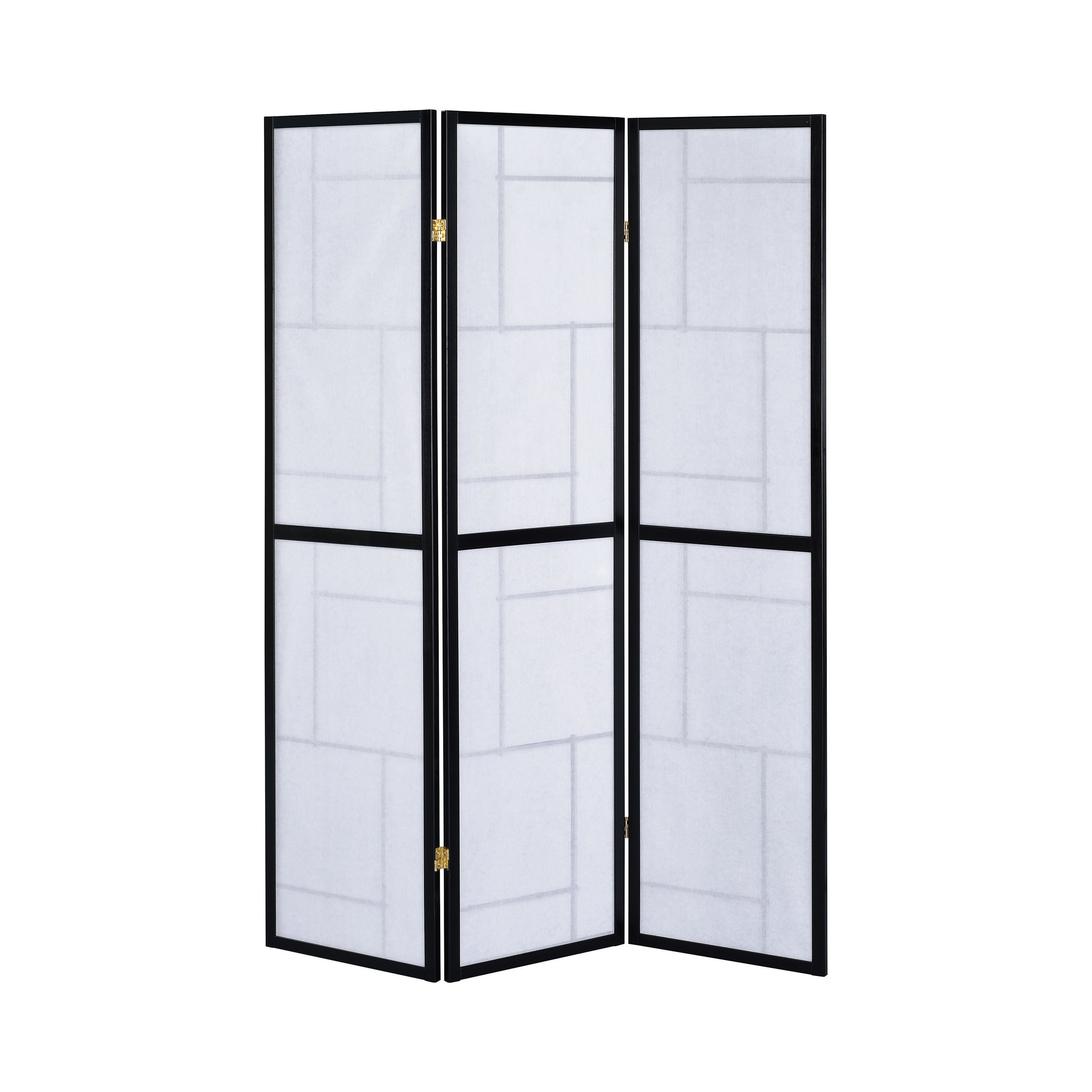 Infuse modern style in a contemporary room. With just a hint of mid-century styling, this three-panel folding screen offers a standout effect. Contrasting white and black lines form a geometric pattern in each panel. A black frame offers a delightful contrast. Adjust panel positions to create a room divider or an impressive decor piece.