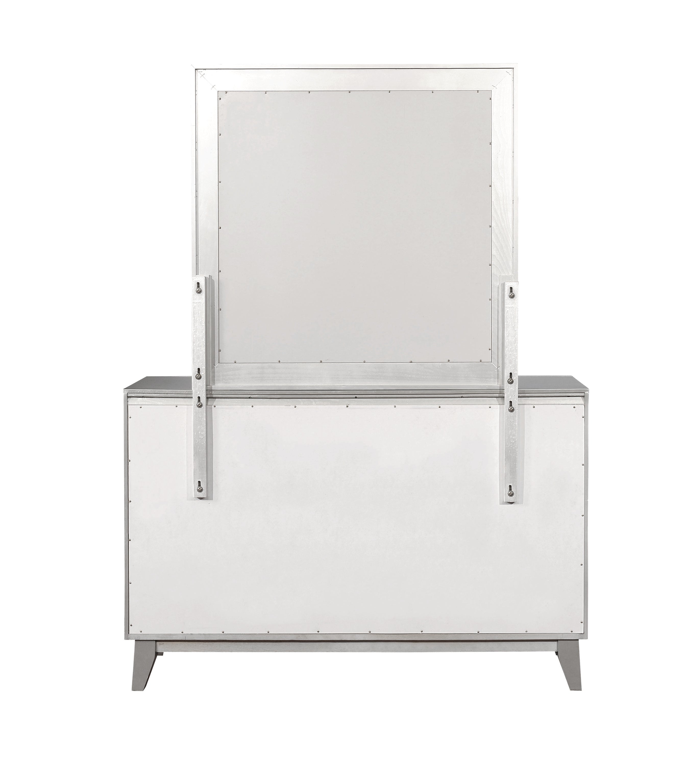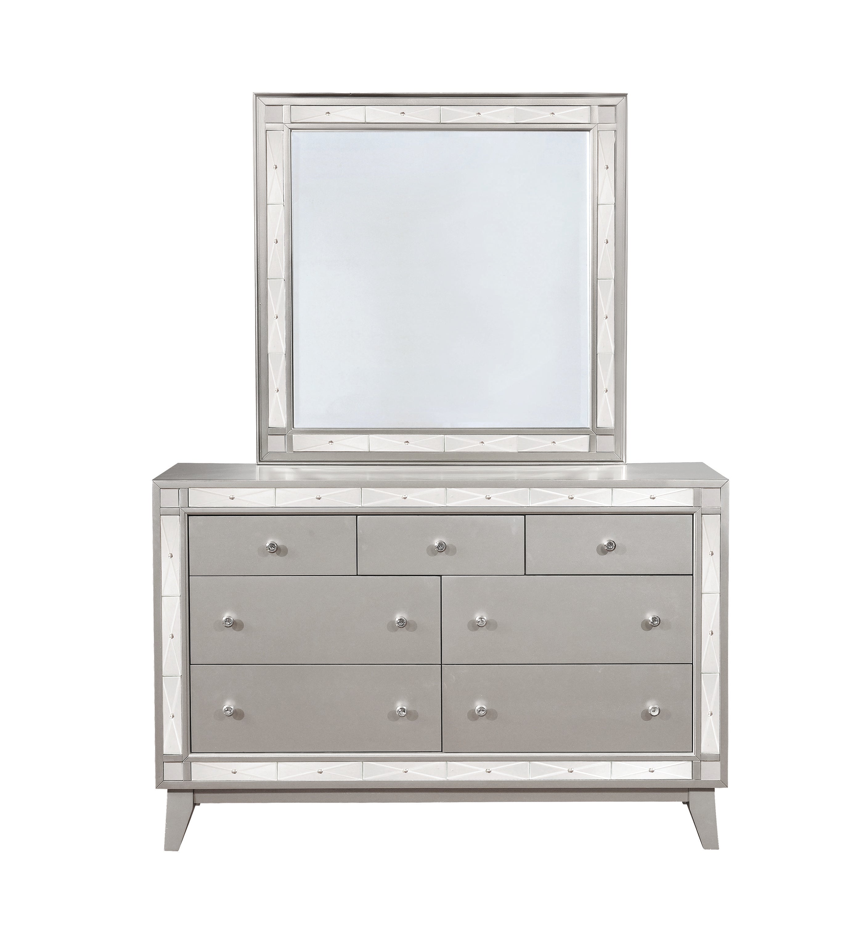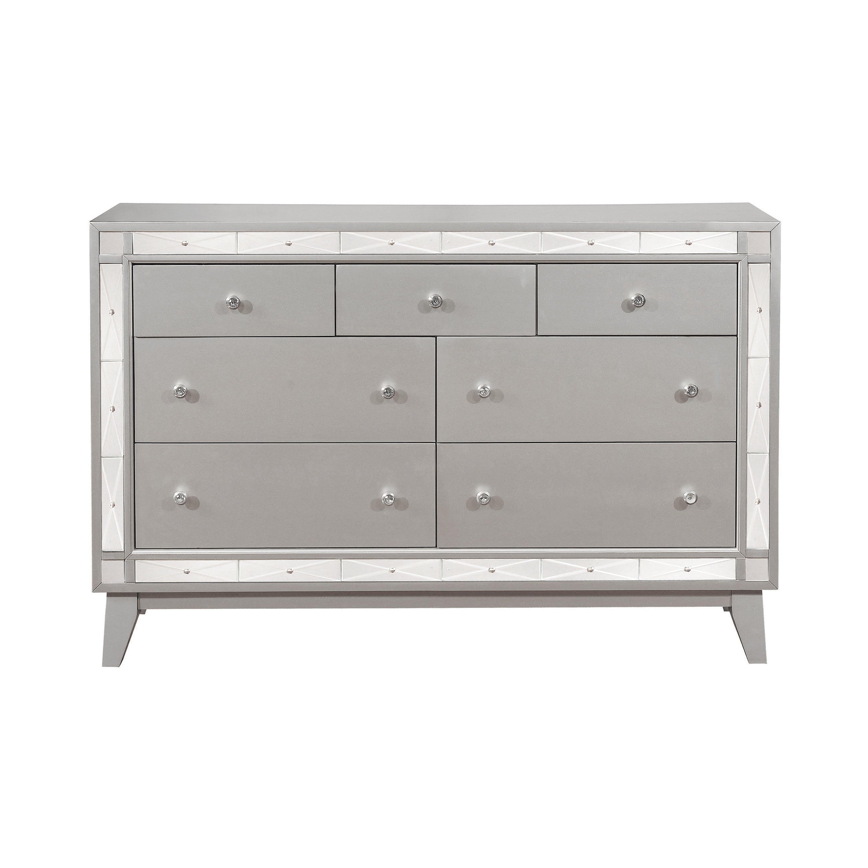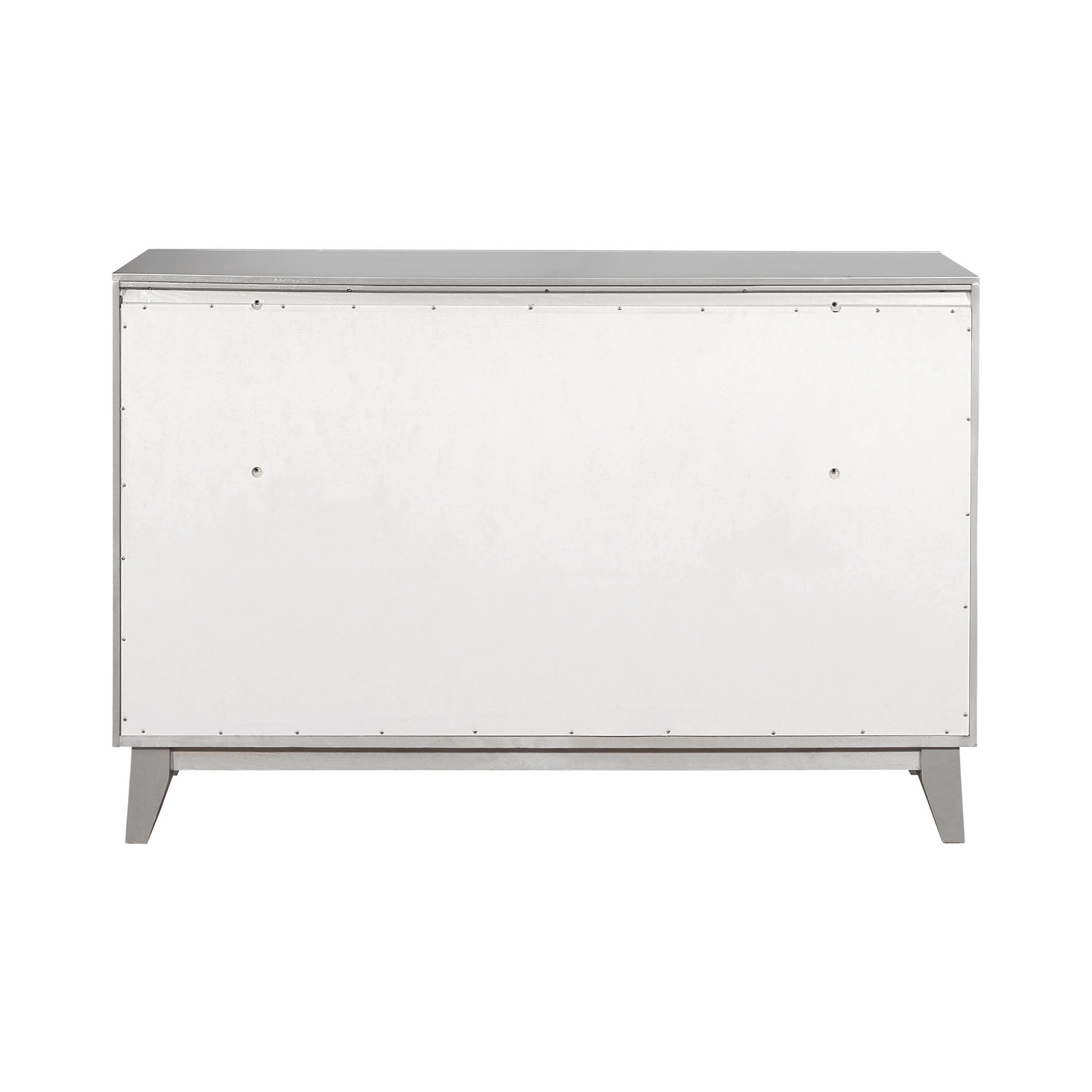 Chic and sparkly, this stunning dresser instantly dresses up a bedroom. A beautiful, metallic mercury finish gives it a lovely, polished look. Its front edges are enhanced by brilliant, reflective accents for a touch of dazzling shine. Spacious drawers allow plenty of space to store clothing and accessories. A Coaster exclusive, this dresser exudes transitional glamour.