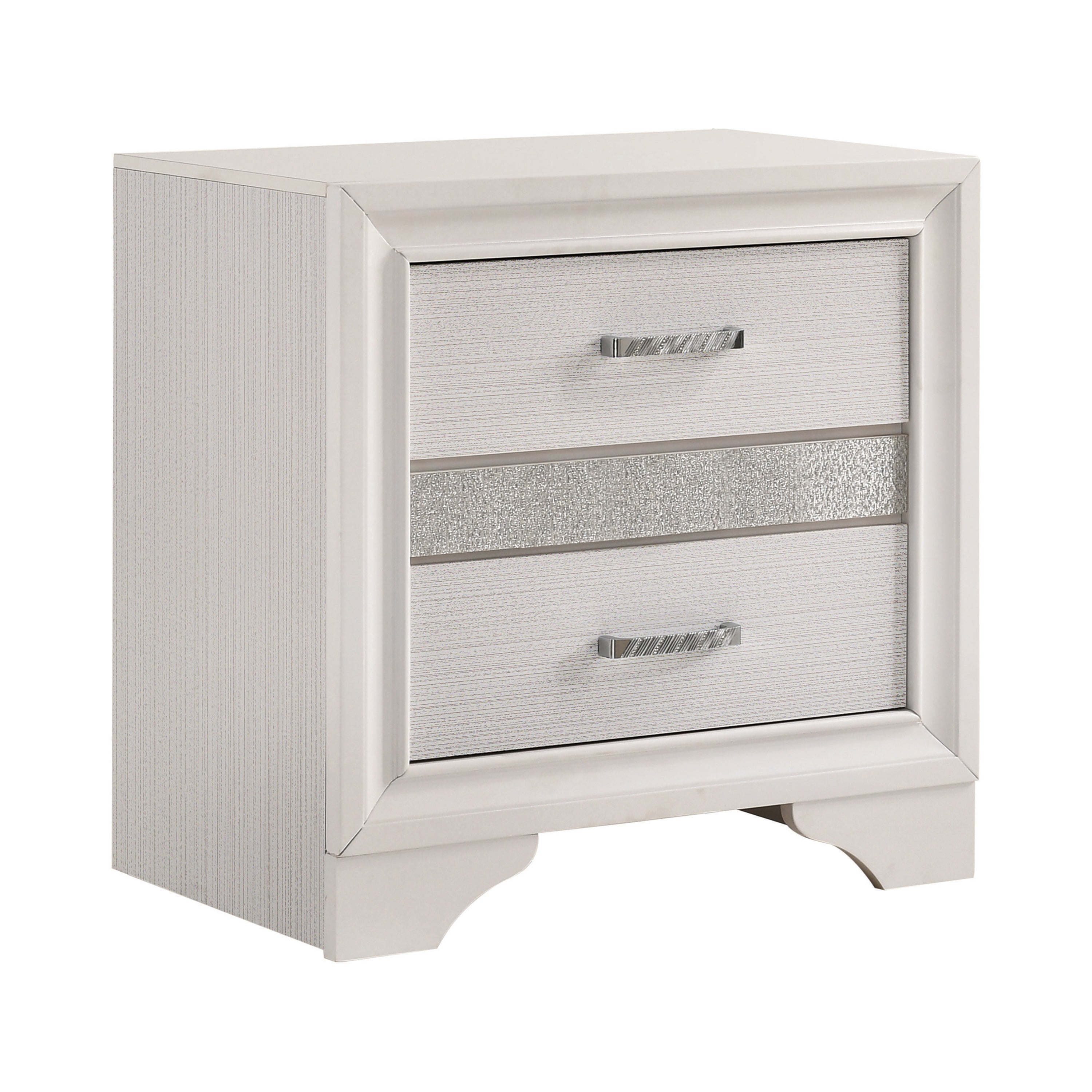 This alluring bed from the Miranda collection has both fashion and function. It features crisp lines and a headboard that's as simple as it is impressive. The footboard is built with two roomy drawers to hold extra sheets and blankets. The bed has an effortless timelessness and elegance. Add to the bedroom for a charming ambiance that's sure to please.