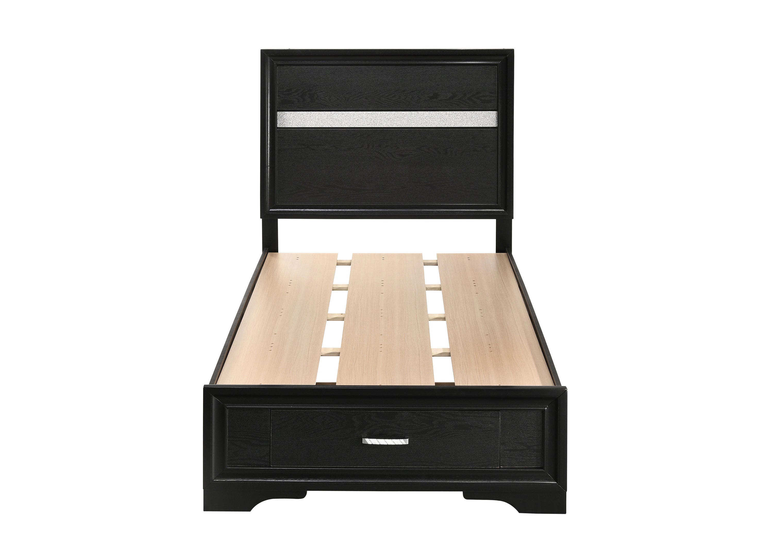 Give your bedroom a glamorous update with this gorgeous storage bed. The headboard and footboard are decorated with acrylic glitter panels for a dazzling touch of shine. Two slide-out drawers are built into the footboard to maximize storage space. The drawers are topped with rhinestone handles for even more beautiful bling. This platform bed is mattress ready for added convenience.
