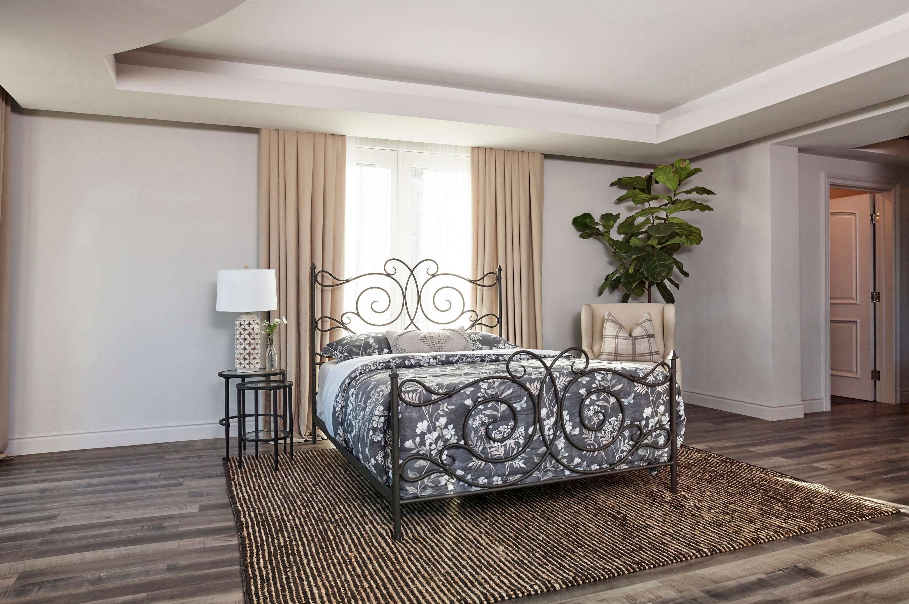 Meticulously designed with delicately intertwined scrollwork paralleled in the headboard and footboard create a graceful focal point