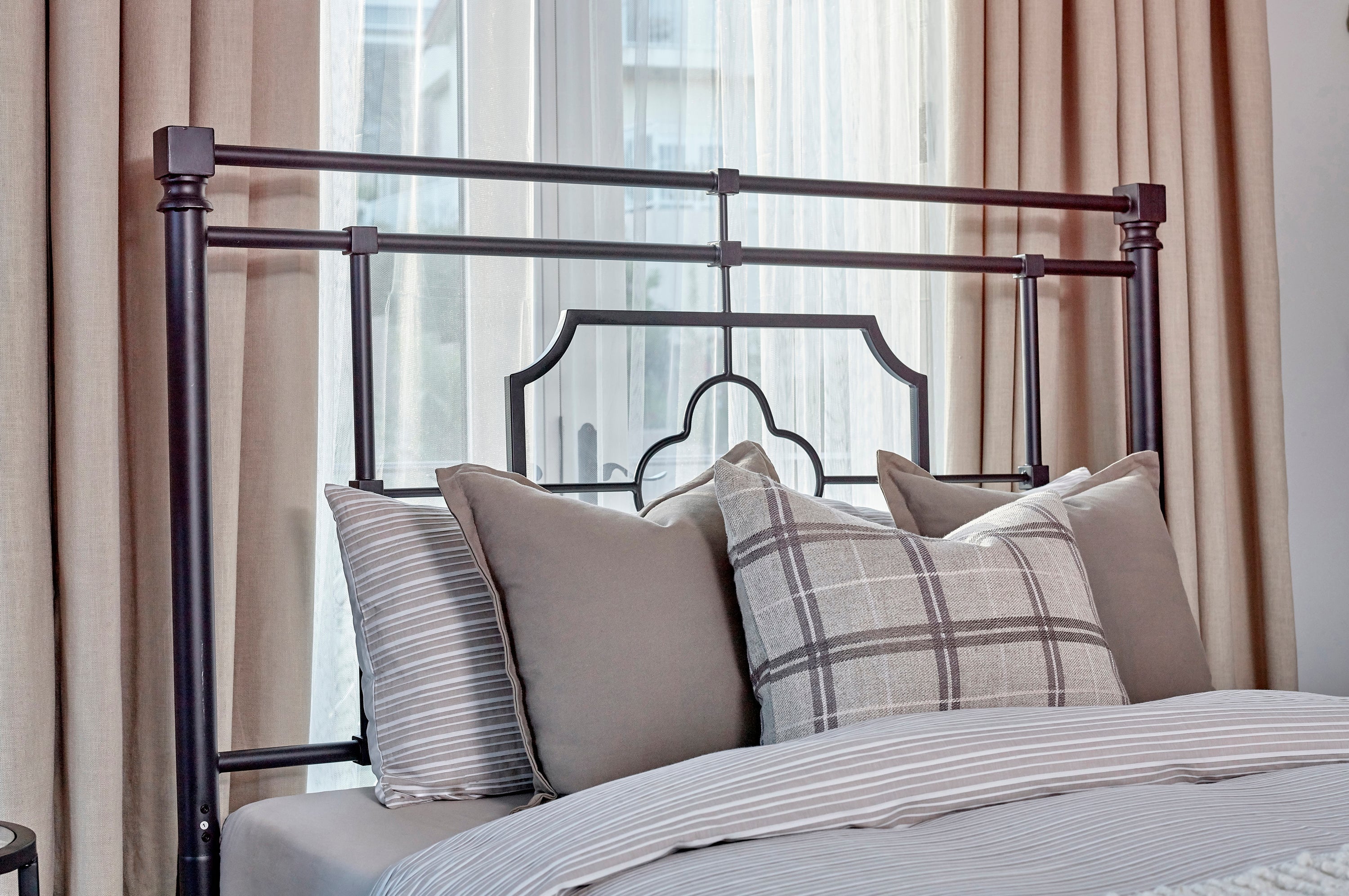 Combining vintage appeal and romantic style, this bold metal bed creates a chic Parisian look with a modernized twist